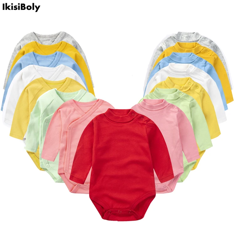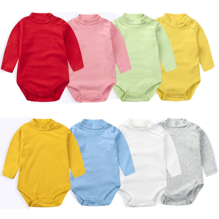 Боди с длинными рукавами для маленьких девочек, хлопковый костюм для новорожденных мальчиков комбинезоны, унисекс, дизайнерская одежда с высоким воротником и боковой застежкой для детей от 3 до 24 месяцев