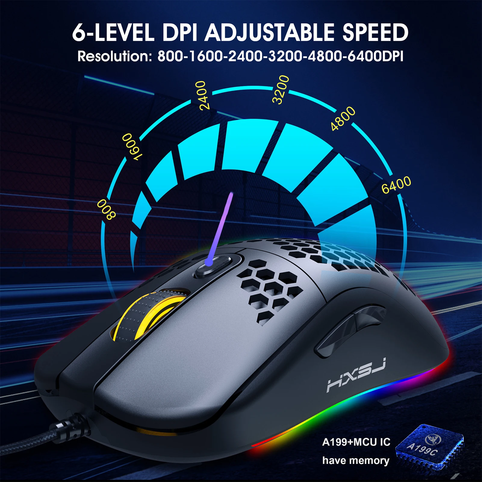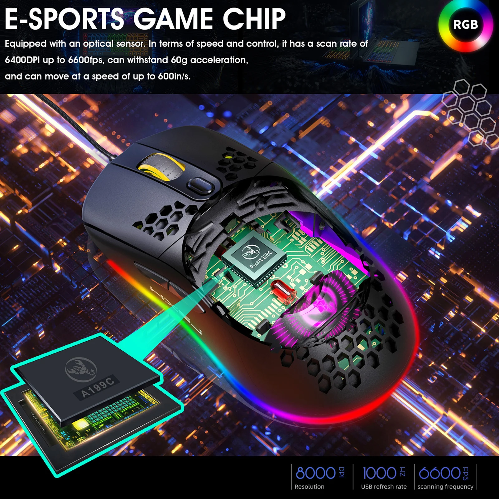 С полым дизайном в виде сот мышь имеет хорошую вентиляцию и эффект рассеивания тепла, который подходит для длительной игры.