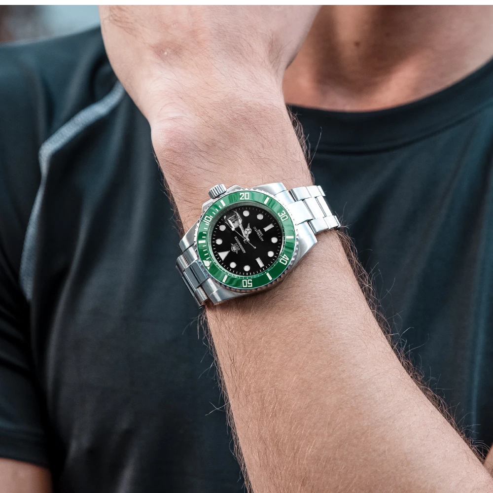 Однонаправленный вращающийся ободок необходим для часов дайвера. Керамический ободок со швейцарской супер светящейся вставкой BGW9 обеспечивает более высокое качество этих носимых классических часов для дайвинга, которые не могут быть выполнены другими аналогичными часами для дайвинга.