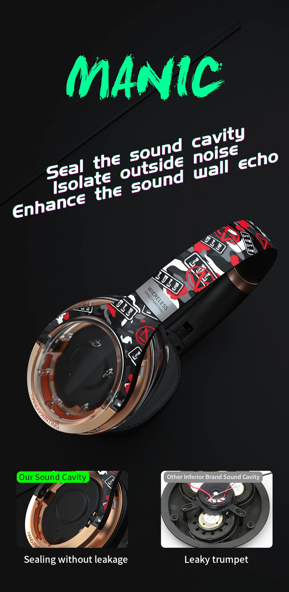 Беспроводные наушники McGeSin, ручная роспись, стиль басов, музыка, наушники, Bluetooth 5,0, Спортивная гарнитура, поддержка tf-карты, 20 ч, время воспроизведения
