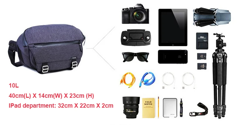 Вставки для сумки для камеры организуют комплекты дронов, беззеркальный комплект или компактную камеру и аксессуары.