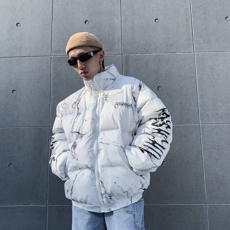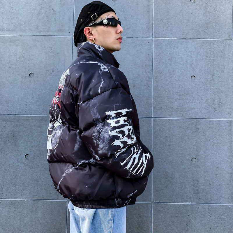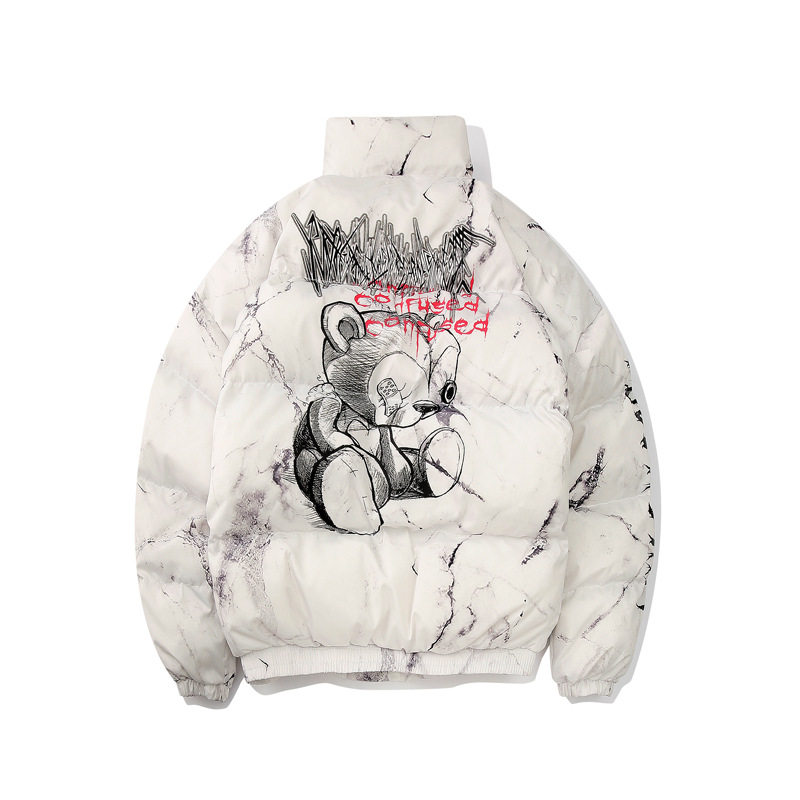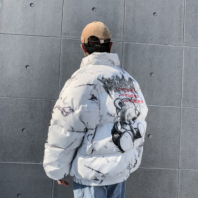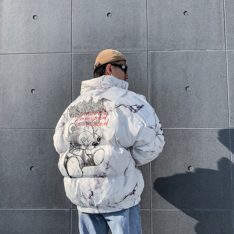 Женская Стеганая куртка в стиле хип-хоп с принтом моряка Муна и медведя, уличная одежда большого размера, хлопковая парка Harajuku с буквенным принтом, зимняя куртки-пузырь