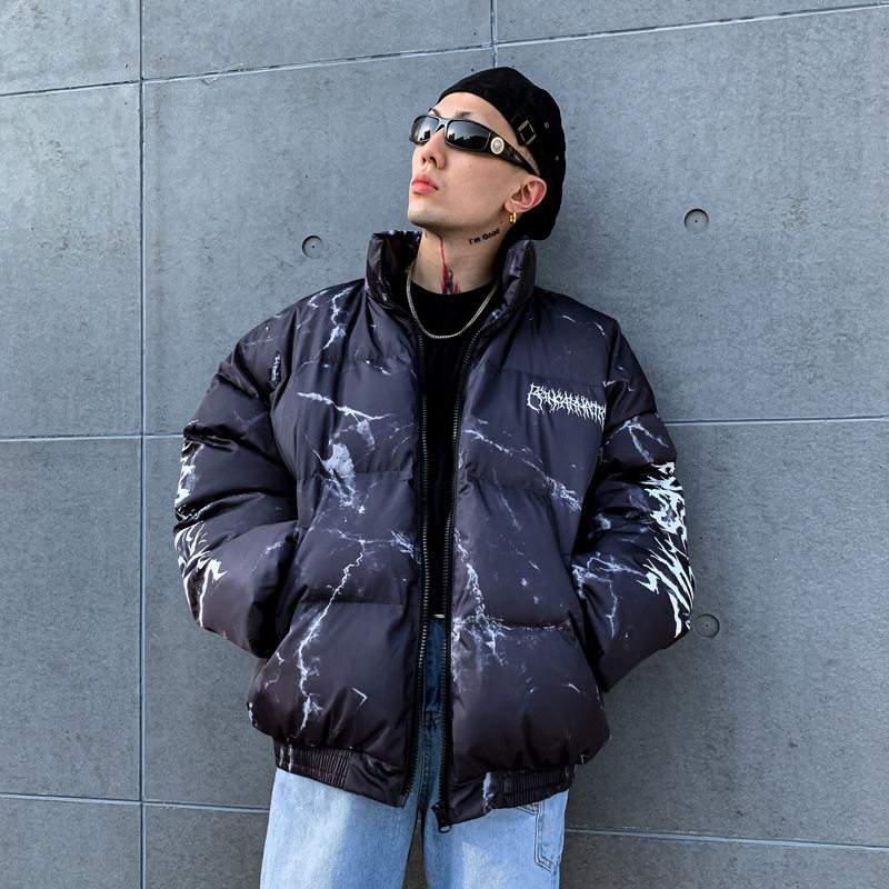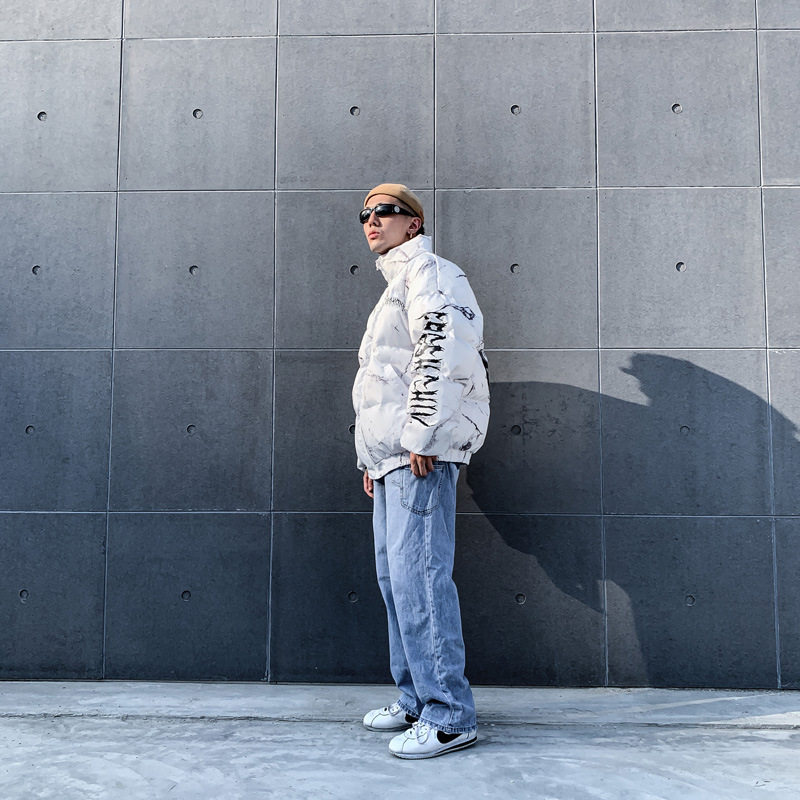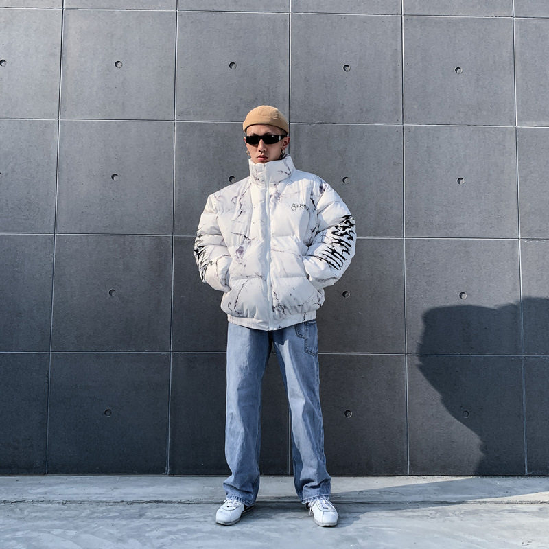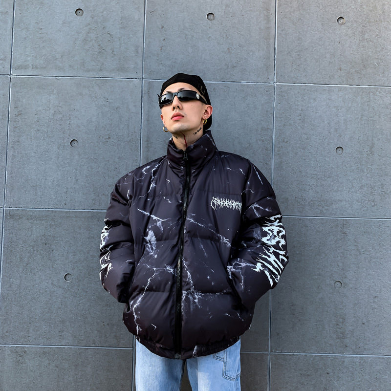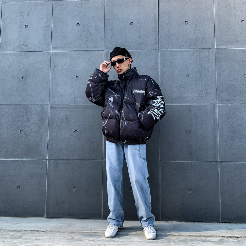 Женская Стеганая куртка в стиле хип-хоп с принтом моряка Муна и медведя, уличная одежда большого размера, хлопковая парка Harajuku с буквенным принтом, зимняя куртки-пузырь