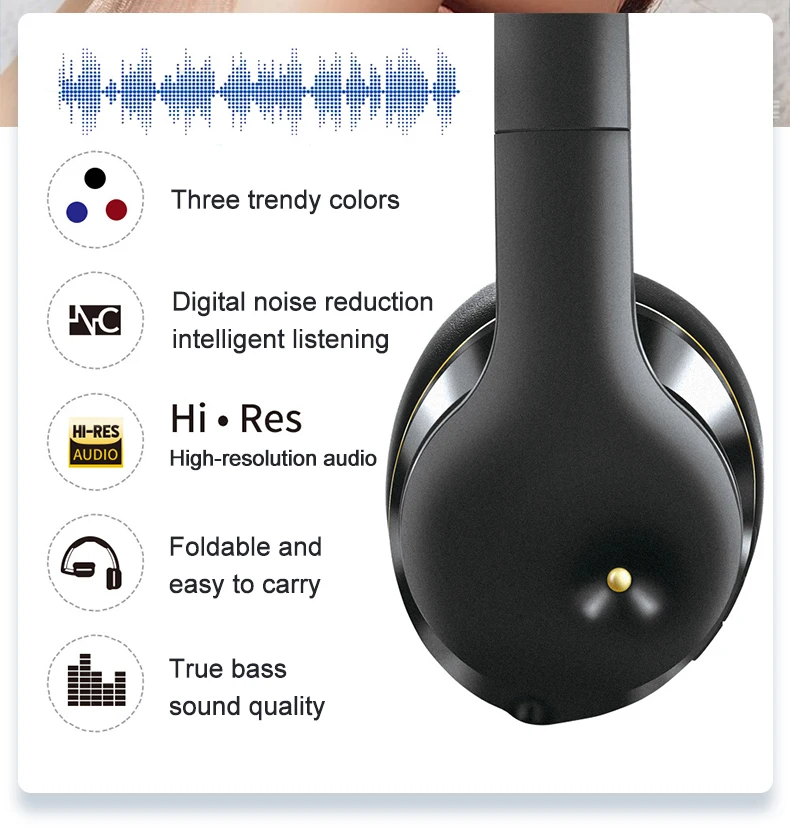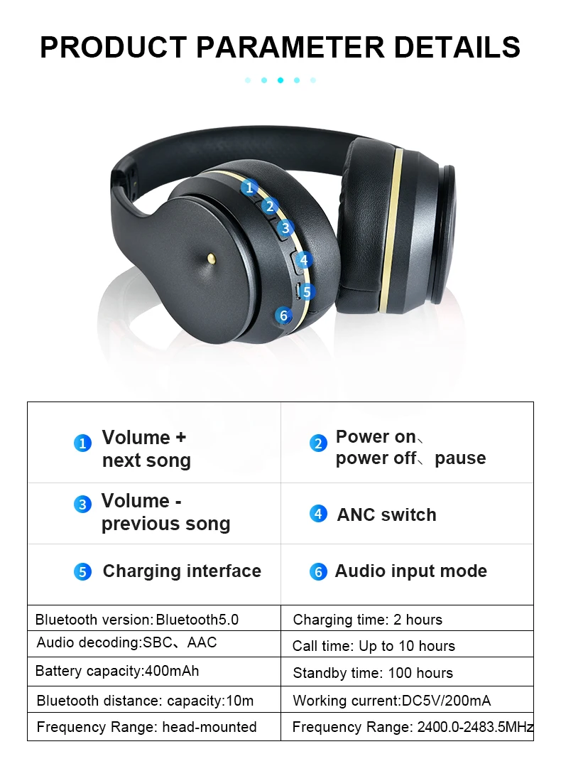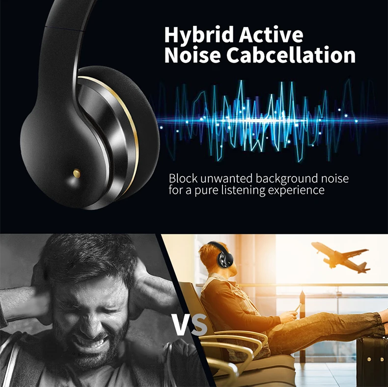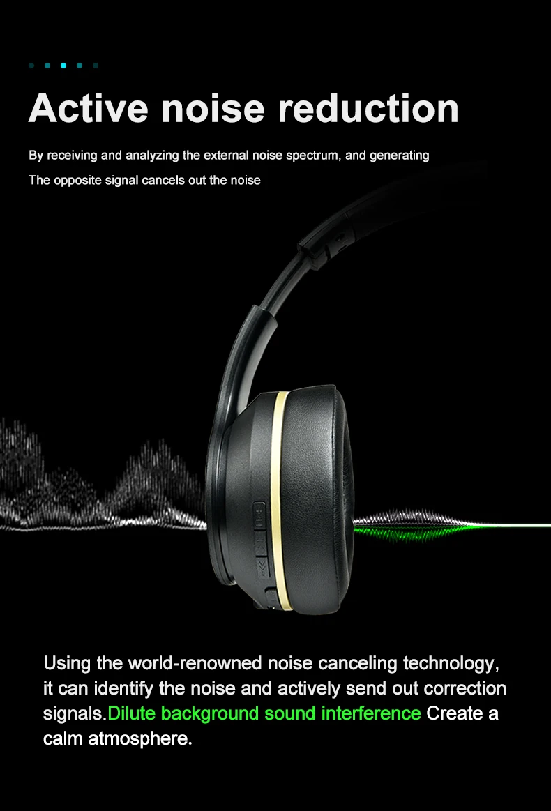 Беспроводные наушники ANC с Bluetooth 5,0, активные складные наушники с шумоподавлением, музыкальные наушники с глубоким басом, игровая гарнитура с микрофоном