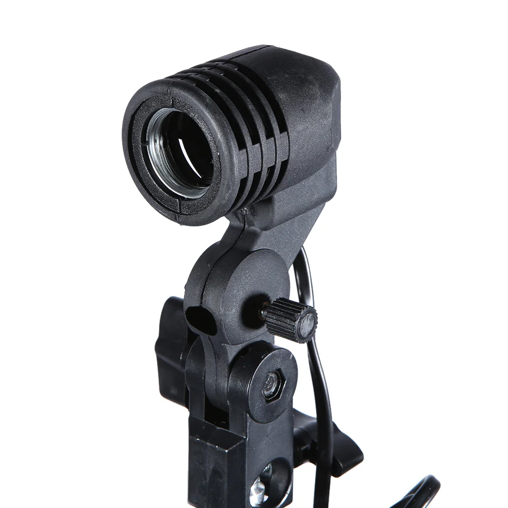 Оснащен держателем лампы, может крепить лампу и зонт на штативе.