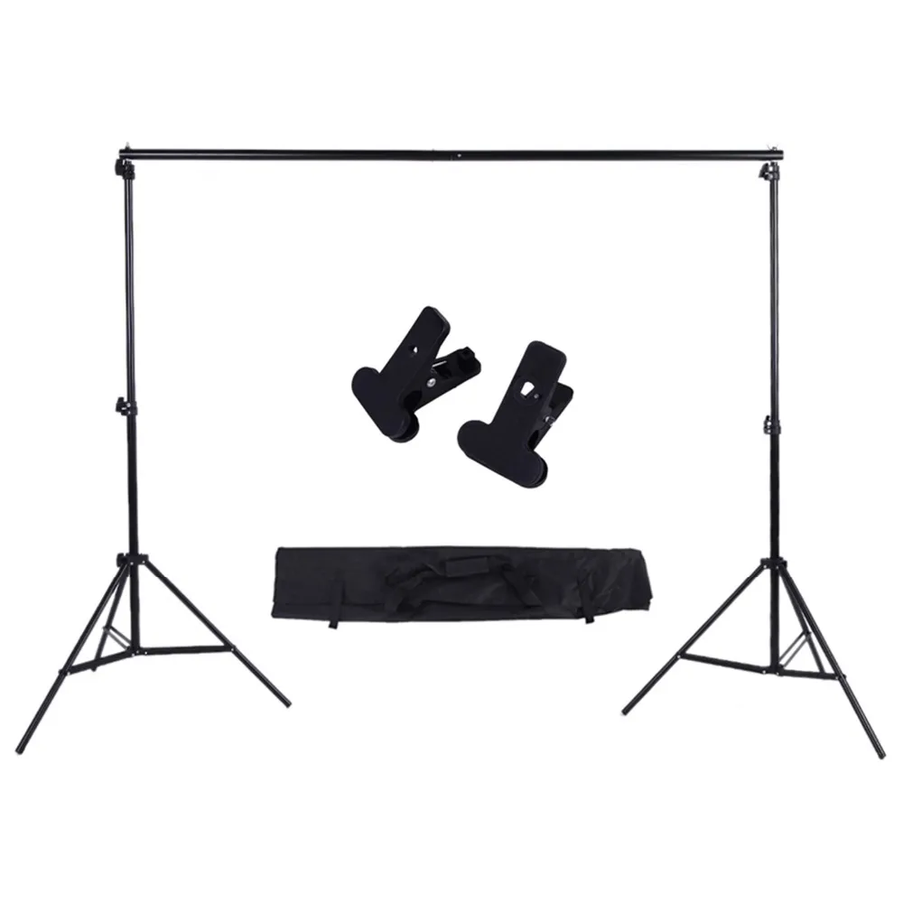 Поставляется с двумя 200 см алюминиевого сплава подставки для фона и тремя фонами (белый * 1 и зеленый * 1 и черный * 1) на ваш выбор.