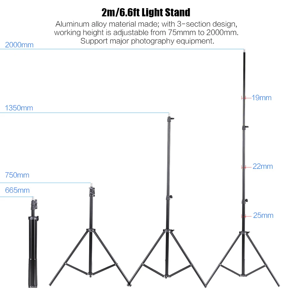 Выдвижные высококачественные осветительные стойки, 3 секции, максимальная длина 2 м, идеально подойдут для ваших нужд.
