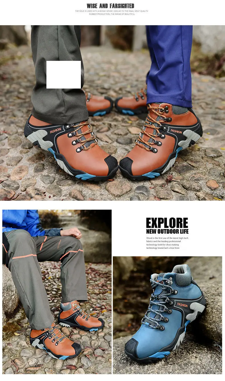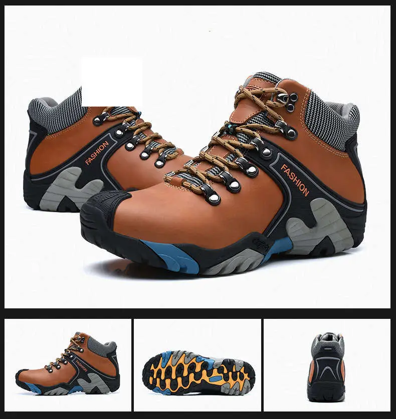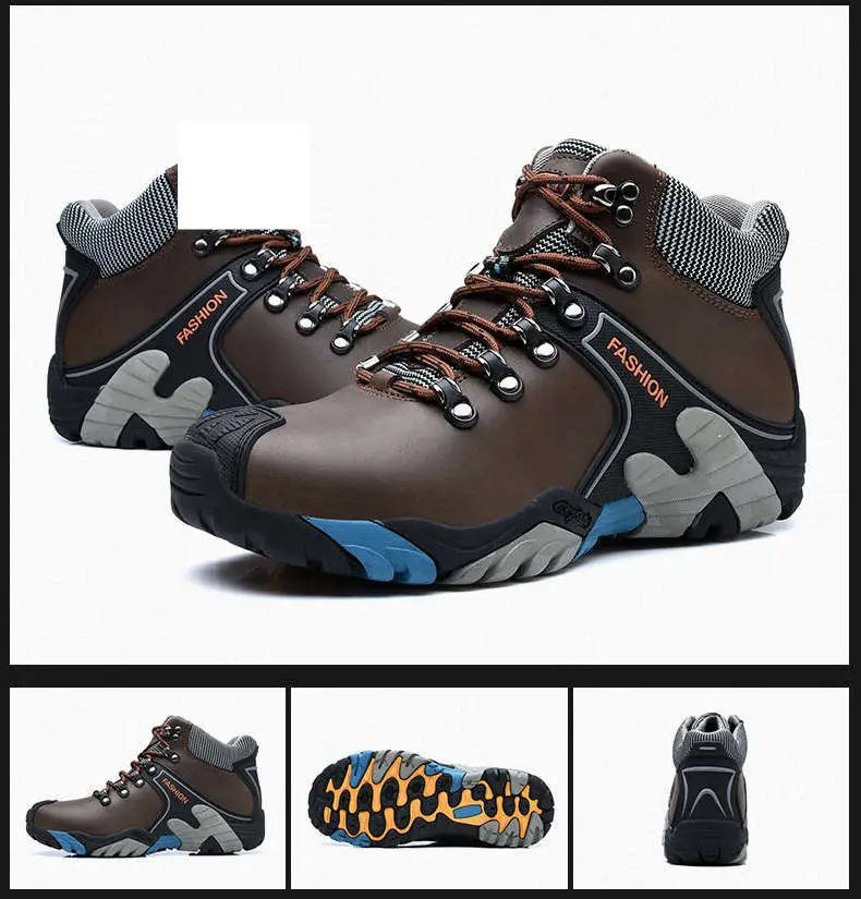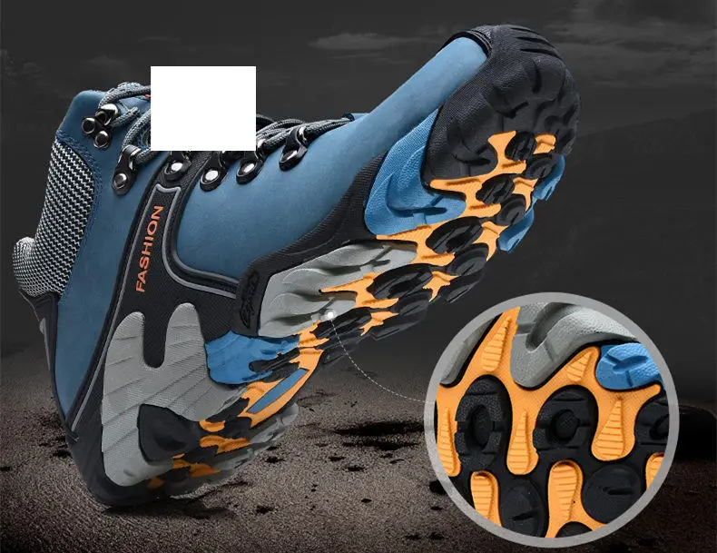 Высокое качество, синие мужские походные ботинки, уличные высокие охотничьи ботинки, мужские удобные треккинговые ботинки из натуральной кожи, большой размер 46