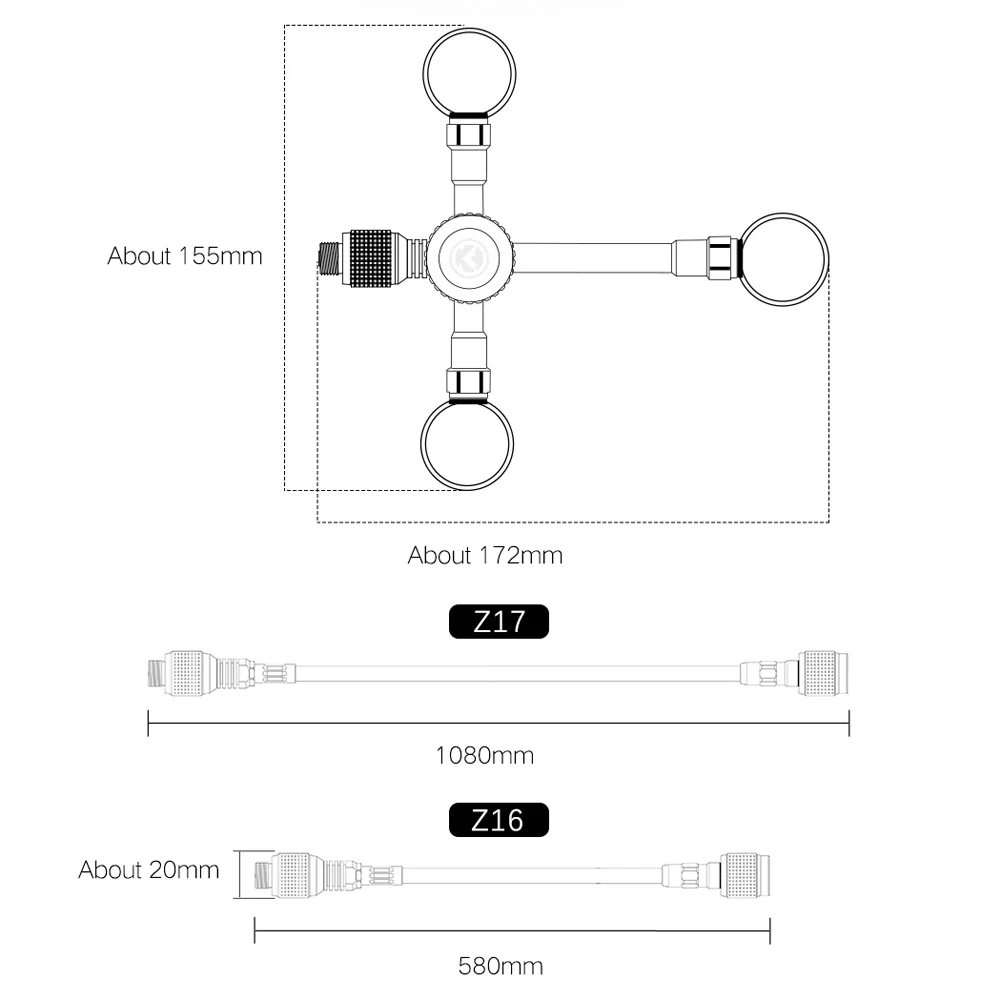 Z17 (включая соединение): 1080*20*20 мм/42,5*0,8 * 0.8in