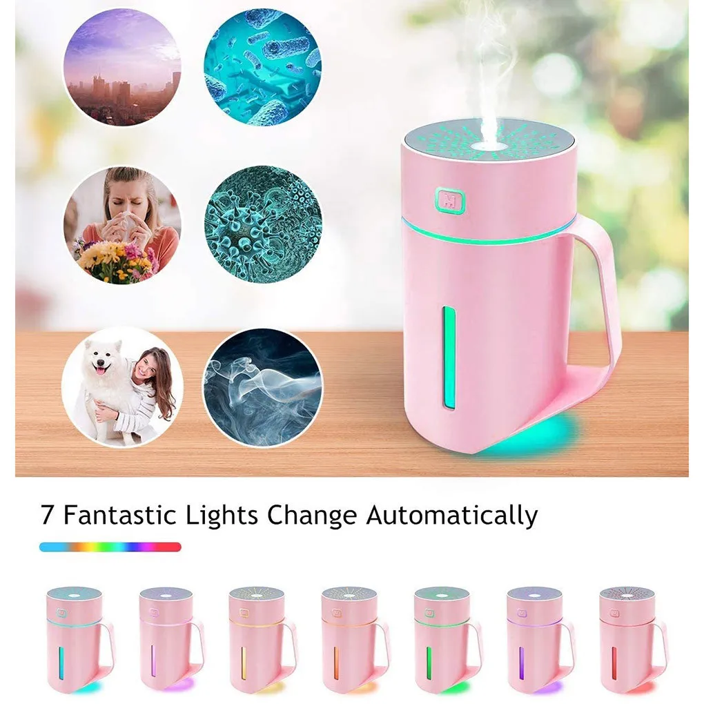 Встроенный цветной светодиодный индикатор мини-увлажнителя время от времени изменит 7 мягких огней, которые имеют расслабляющий и