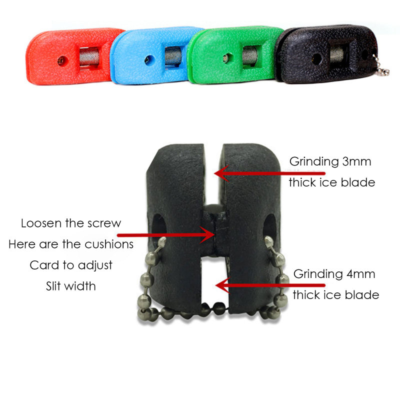 3. Если Два канавки подходят для толщины лезвия, вы можете отрегулировать размер Точилки для обуви льда, вставив карту в нее с фиксацией винта.