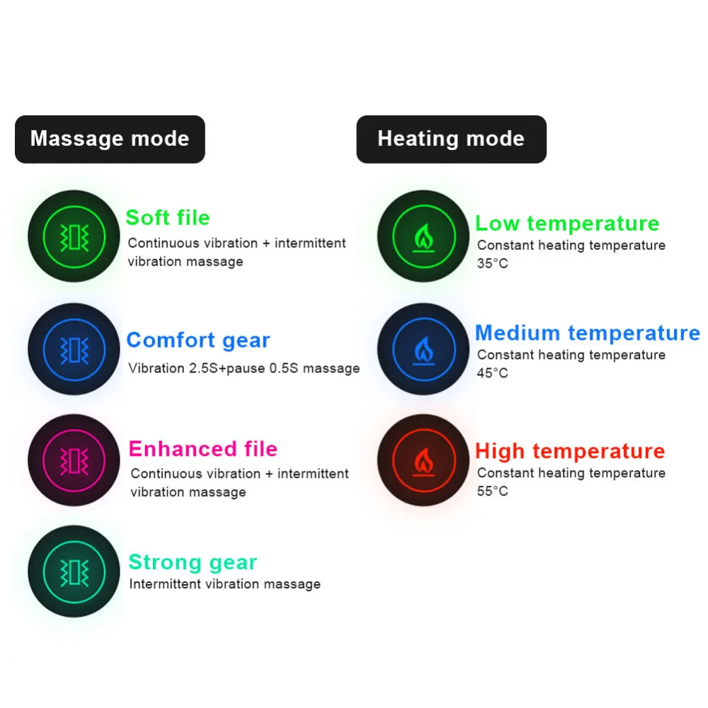 Режим нагрева: низкая температура 35 ℃/средняя температура 45 ℃/высокая температура 55 ℃