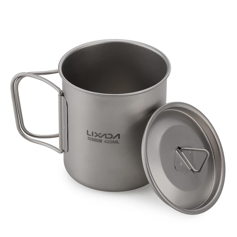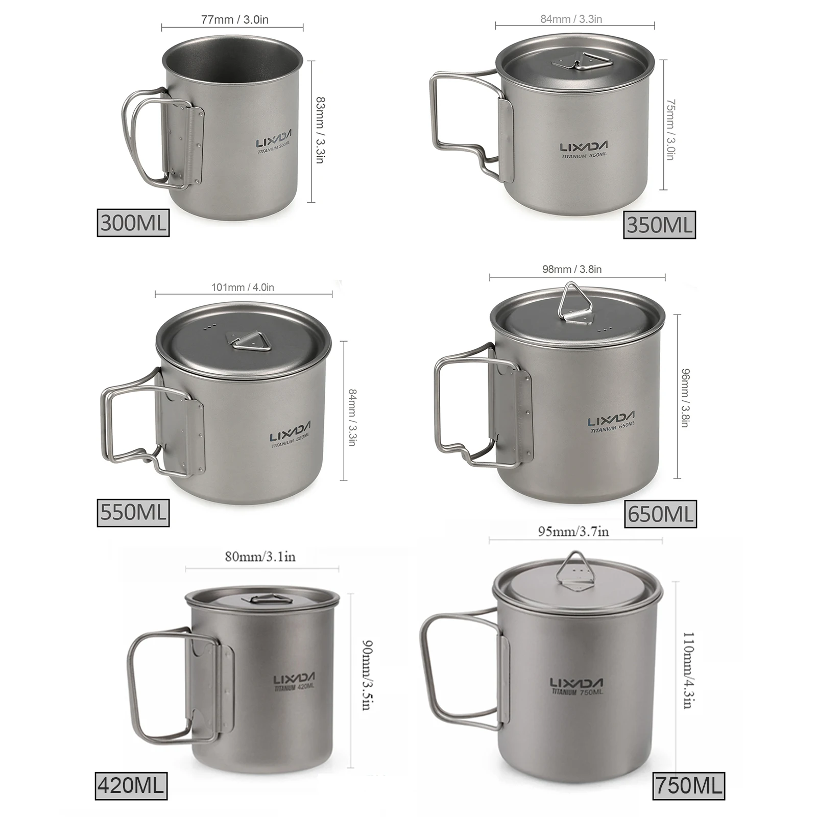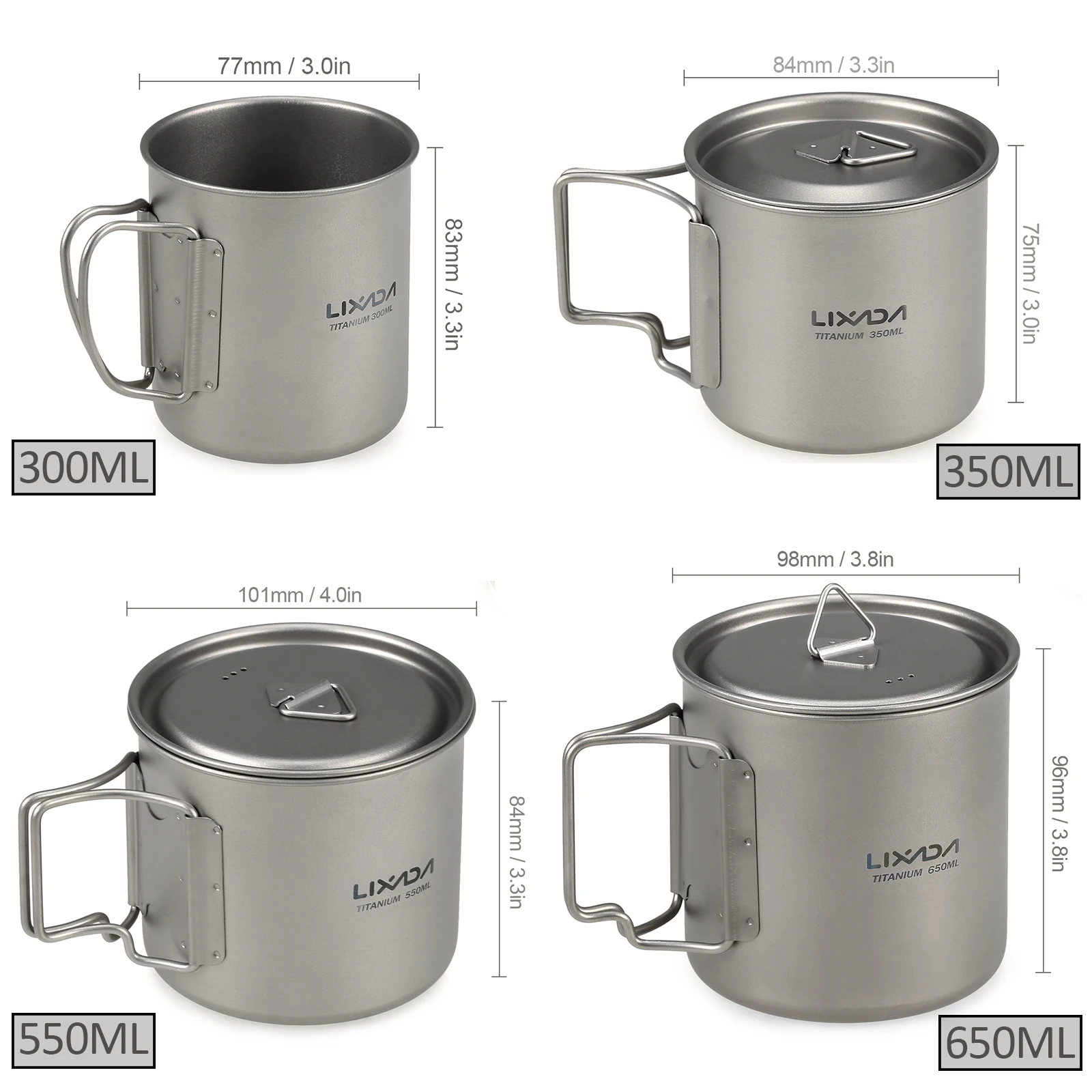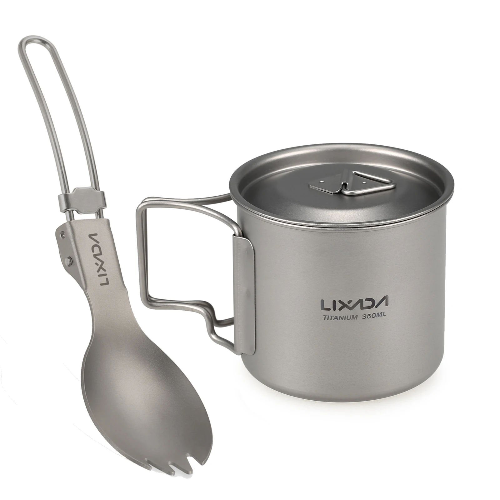 Этот набор посуды включает в себя титановую стаканчик для воды и спортивный, супер-светильник и долговечность. Ручки чашки и спортивные складываются для удобного хранения и экономии пространства. Отлично подходит для кемпинга, пеших прогулок, альпинизма, пикника, выживания на открытом воздухе и других видов деятельности.