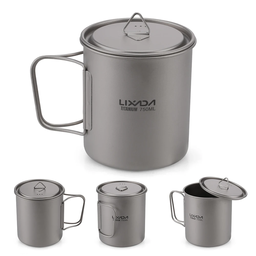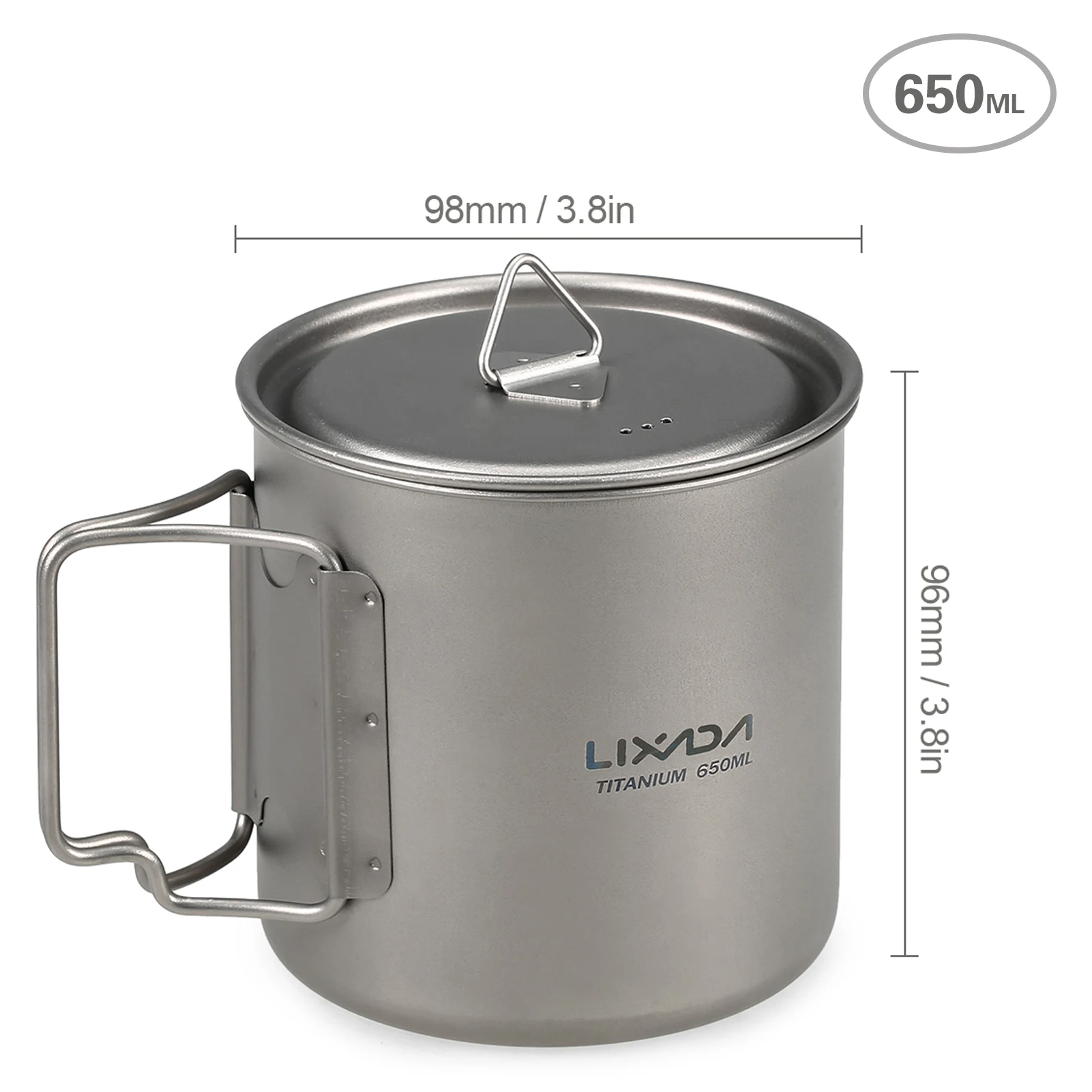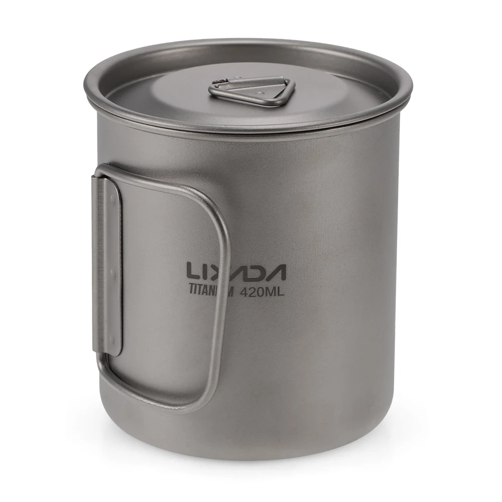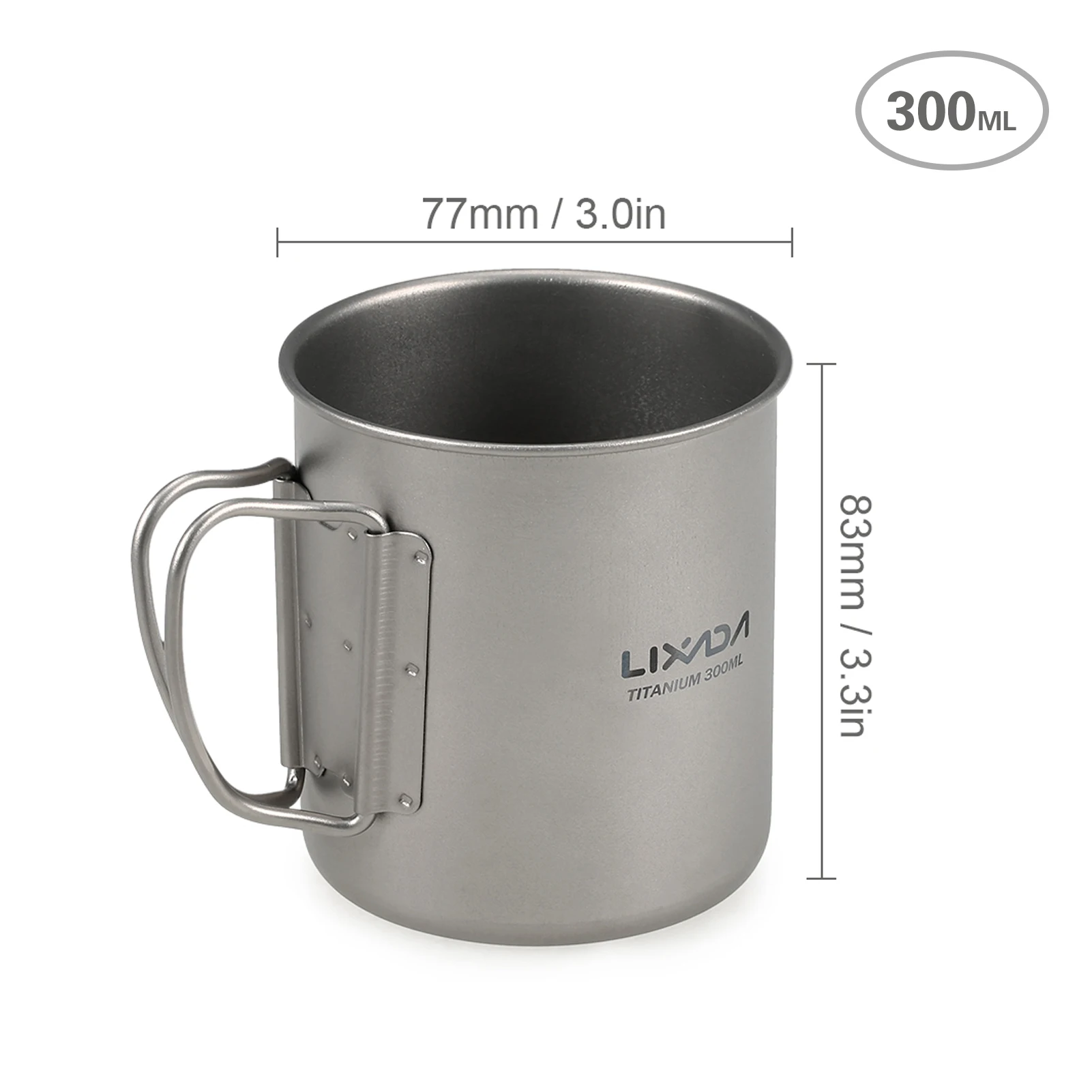 Этот набор посуды включает в себя титановую стаканчик для воды и спортивный, супер-светильник и долговечность. Ручки чашки и спортивные складываются для удобного хранения и экономии пространства. Отлично подходит для кемпинга, пеших прогулок, альпинизма, пикника, выживания на открытом воздухе и других видов деятельности.