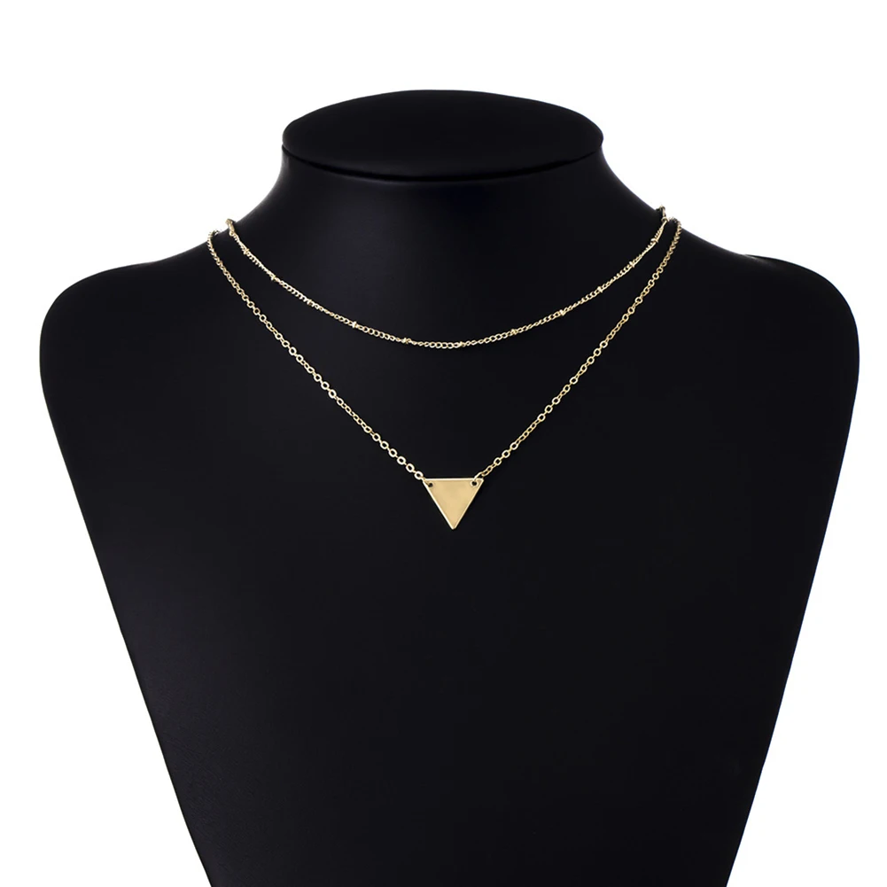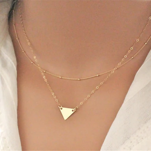 Features: Triangular Pendant, Double Layered Chain, Fashion Jewelry