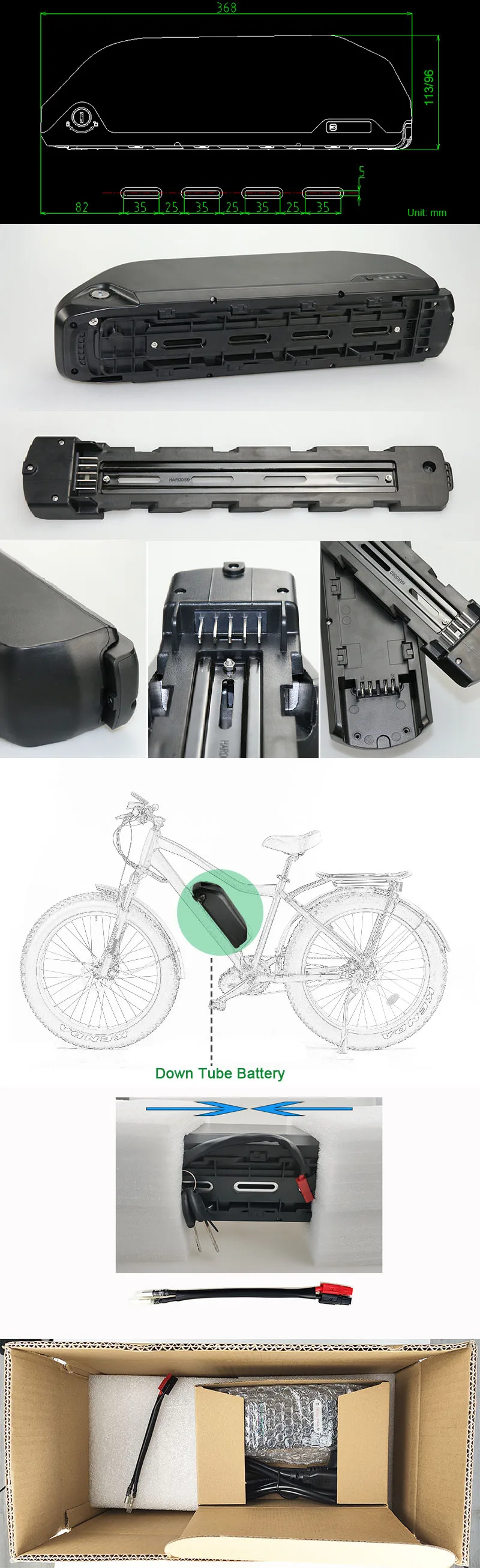 * Номинальный Вольт: 36 В/48 В/52 в * Батареи: импортные и китайские 3C ячейки * Батарея Вес: 2,8-5,5 кг * Максимальная постоянная разрядка тока: 22A-30A * Пиковый ток: 85A -100A * 36 В напряжение заряда батареи: 42 в * 48 В напряжение заряда батареи: 54,6 в * 52 В напряжение заряда батареи: 58,8 в * 36 В разрядка батареи отключение напряжения: 28 в * 48 В разрядка батареи отключение напряжения: 36,4 в * 52 в разрядка батареи отключение напряжения: 39 в * Срок службы: 800 раз * Способ зарядки: CC/CV * Температура зарядки: 0-45 ℃ * Температура разряда: -20-65 ℃ * Функция защиты: перезарядка, разрядка, Перегрузка по току, короткое замыкание, баланс
