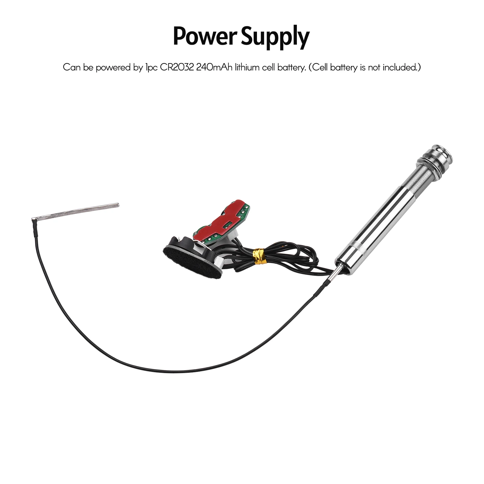 Входящий в комплект пьезо-стержень улавливает звук без шума. Штепсельная Вилка сварена бесшовной медной трубкой, которая отличается более высокой надежностью. Полностью экранированная передача сигнала может эффективно уменьшить шум.