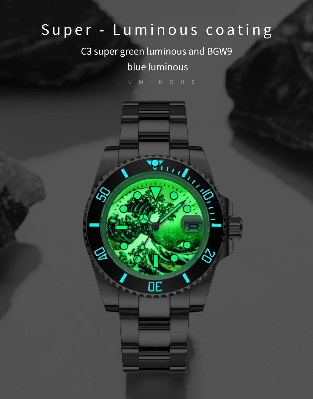 Керамический Безель, наполненный Swiss BGW9, супер светящийся