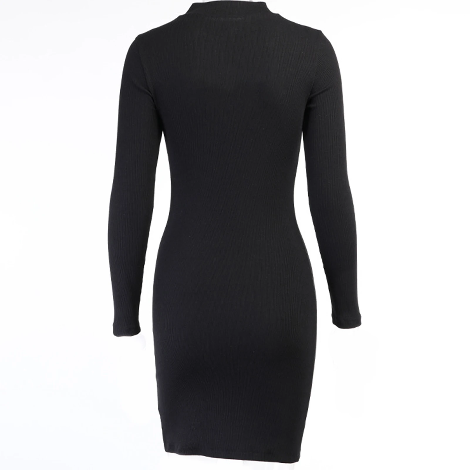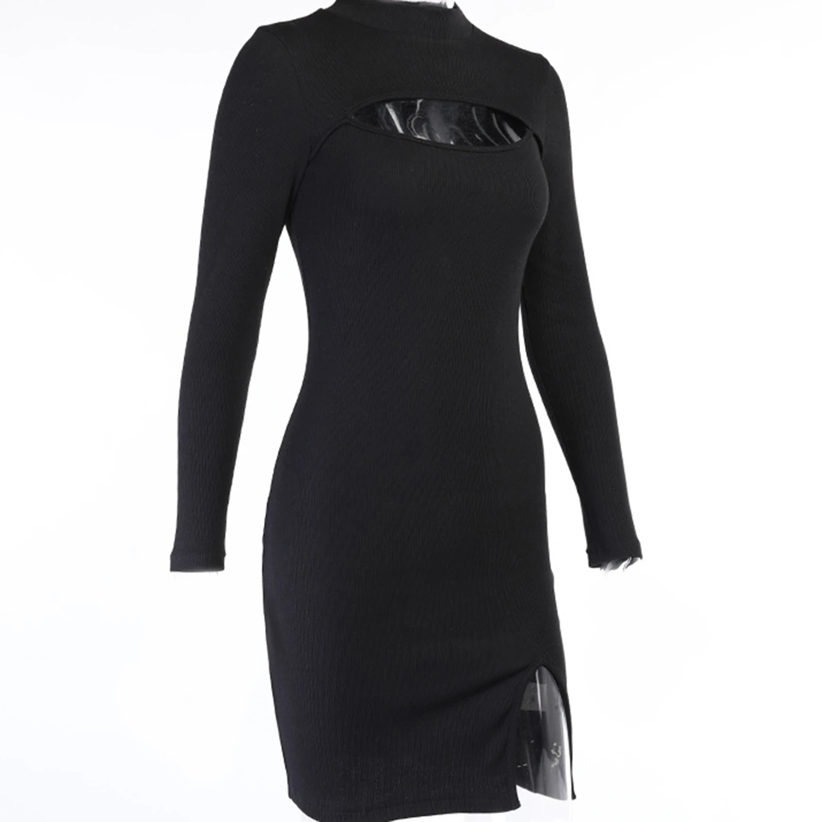 Сексуальное женское платье с О-образным вырезом, вырезом на груди, разрезом и длинным рукавом