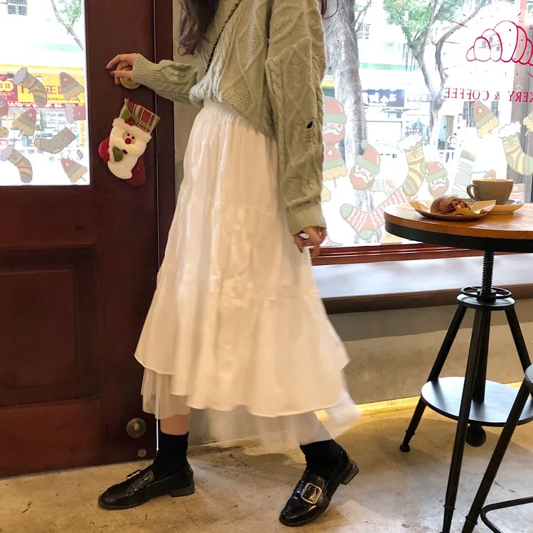 Осенне-зимняя длинная юбка в стиле бохо, Женская юбка с высокой талией и оборками, белая, черная, пляжная юбка, розовая фатиновая юбка, Корейская плиссированная юбка в стиле пэчворк, X919
