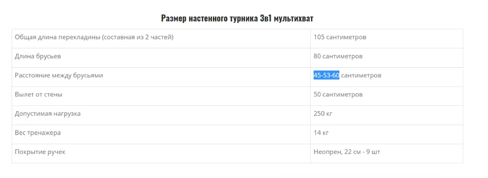 Вылет брусьев от стены (в положении "брусья"): 740 мм