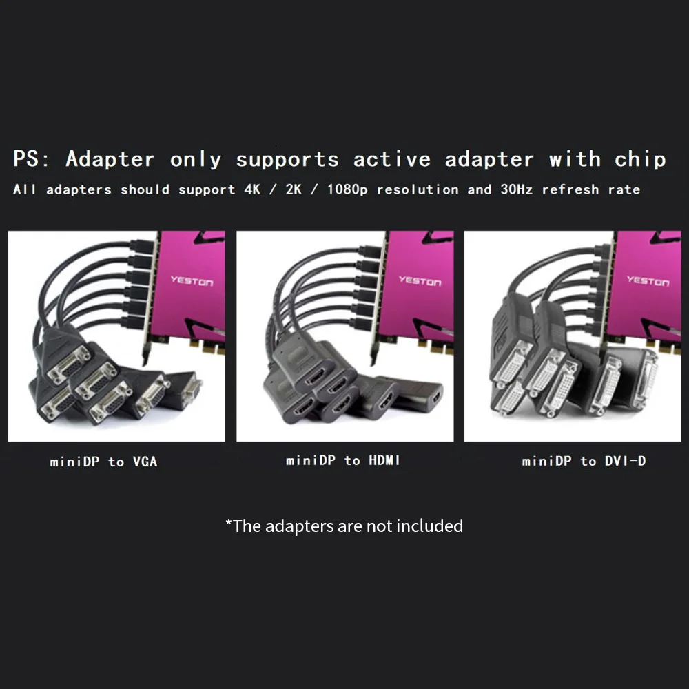 6 портов miniDP поддерживают раздельные экраны, обеспечивают свободное сочетание 6 экранов, вы можете свободно регулировать между расширенным режимом, режимом репликации и режимом интеграции.