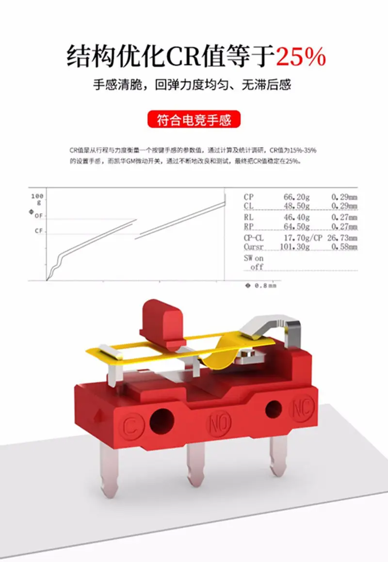 12 видов высококачественный мышь микропереключатель ремонтная коробка4 шт., красная кнопка мыши Kailh GM, 60 м, микро-переключатель для игровых соревнований, 3 контакта, красная точка, используется на компьютерных мышах, левая и правая кнопкиКлючевые характеристики/особые характеристики:Характеристики:Ток: 0,1 А (максимальный)Напряжение: 30 В постоянного тока (максимальное)Рейтинг: 30 в пост. Тока/0,1 АКонтактное сопротивление: 100 МОмСопротивление изоляции: 100МОмВыдерживаемое Напряжение: 500 В переменного тока (от 50 до 60 Гц)Рабочая сила: 65 ± 15gfСила выпуска: 25 ГС (мин)Рабочее положение: 6,90 ± 0,2 (мм)Срок службы: 60000000 циклов (минимальный)