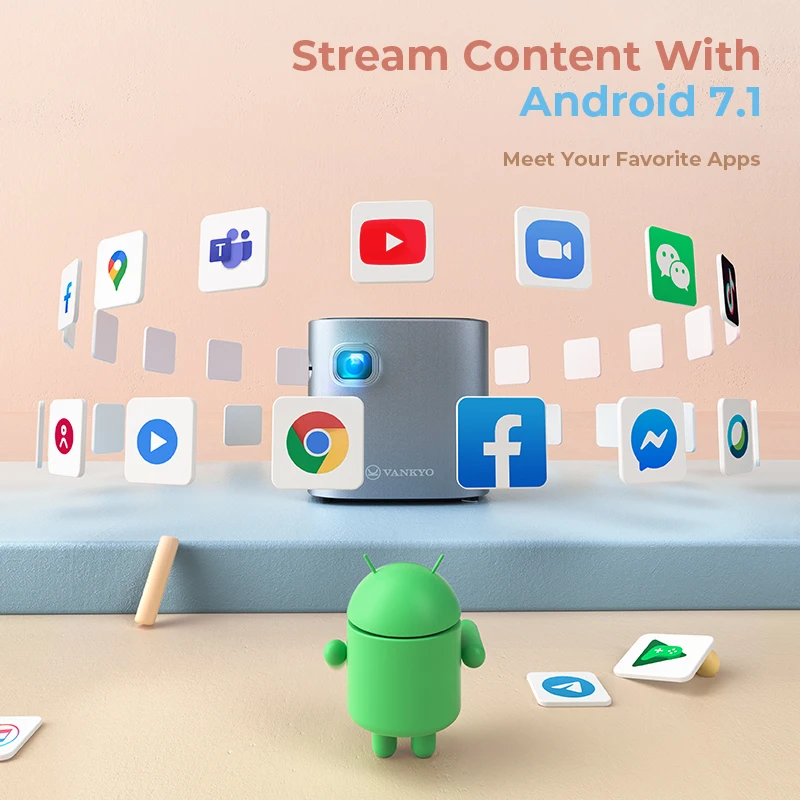 Vanyo Мини проектор 55 Android 7,1 1 ГБ 16 ГБ 2,4g/5G WiFi BT4.0 120 дюймов Портативный светодиодный проектор