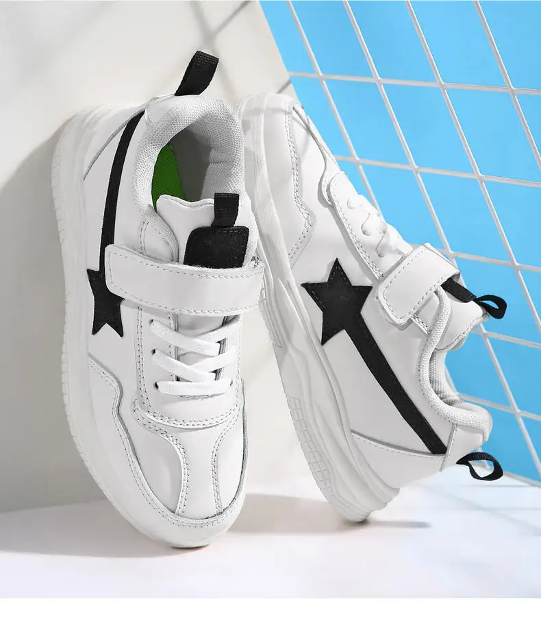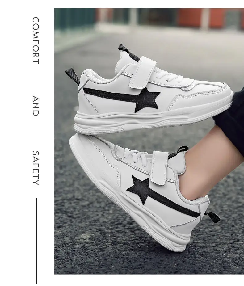 Описание товара: Спортивная детская обувь со звездами; Удобная белая детская обувь для скейтбординга; Трендовые кроссовки на липучке для мальчиков и девочек; Zapatillas NiñoПосылка и доставка: