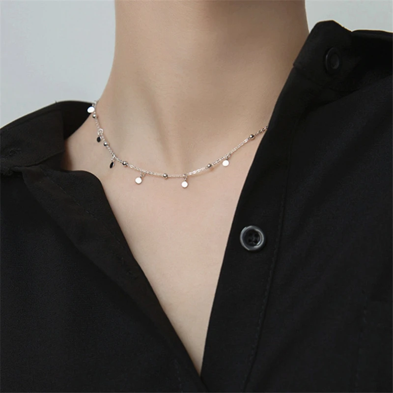 Женский короткий чокер из серебра 925 пробы с кисточками