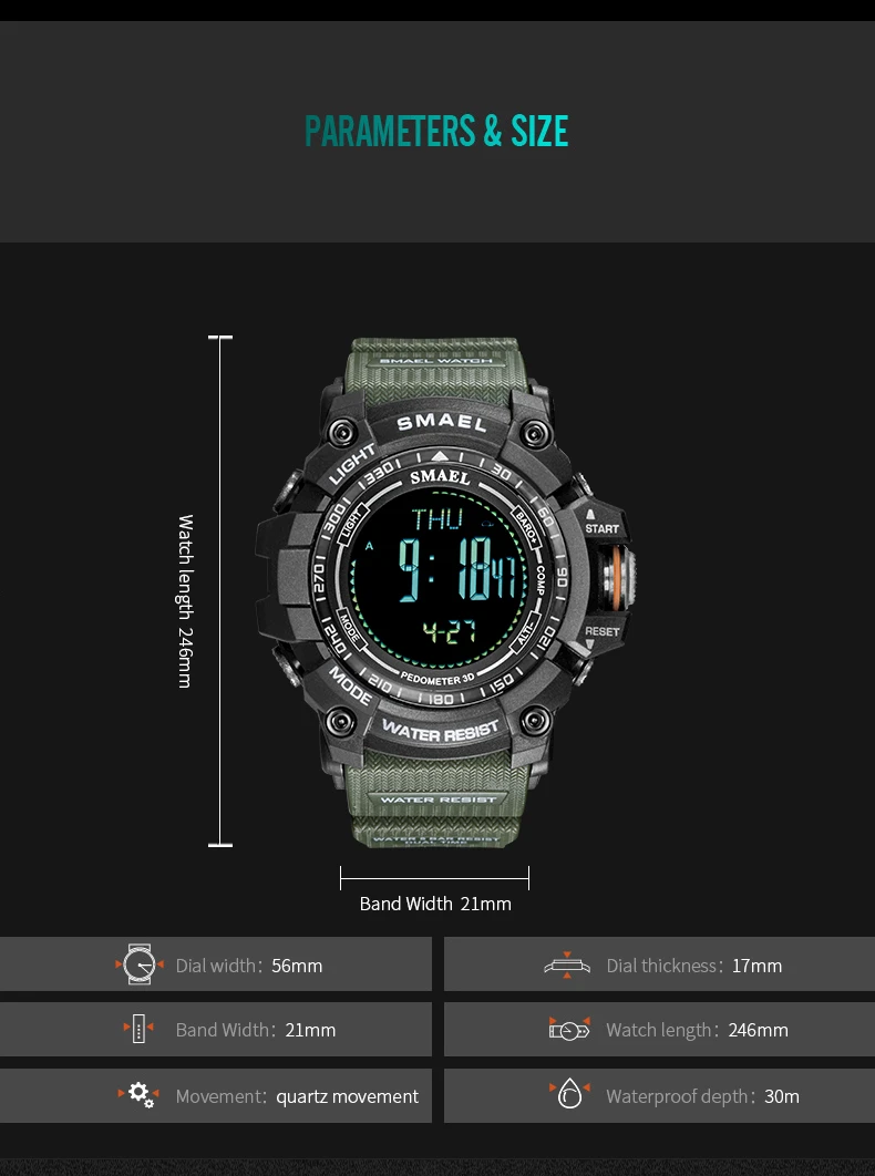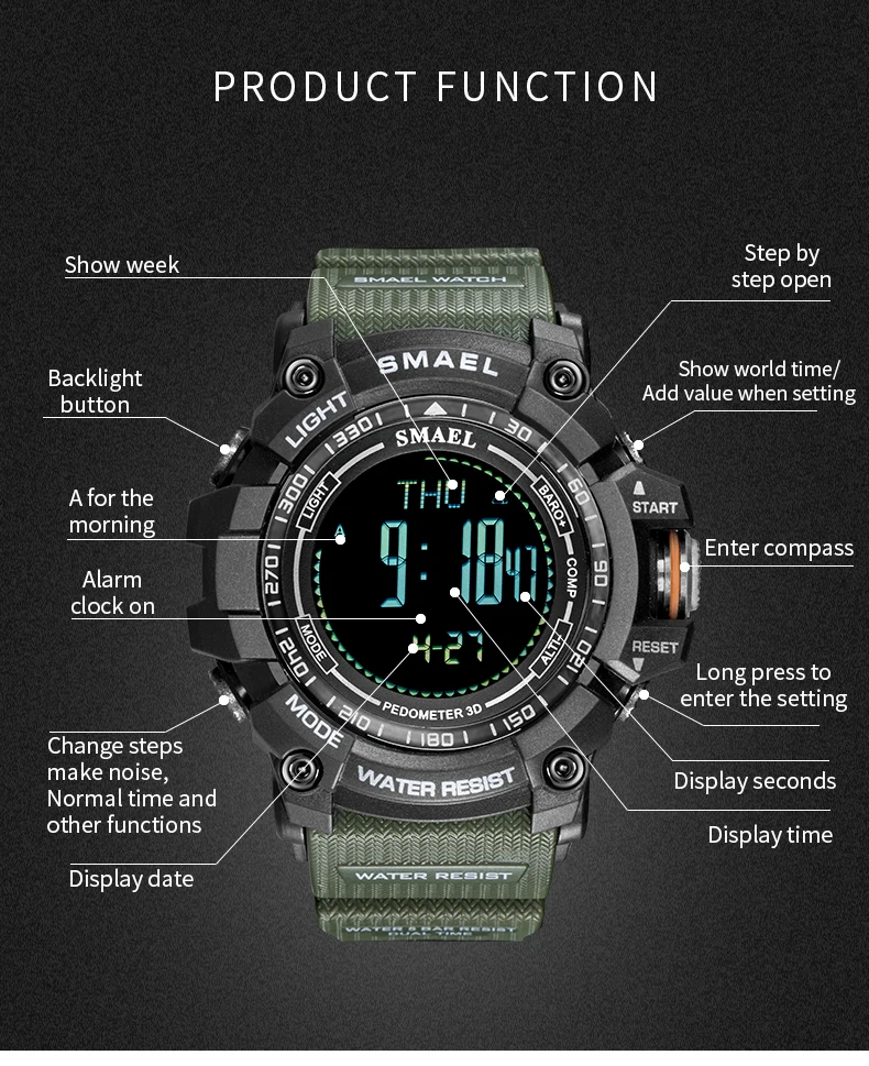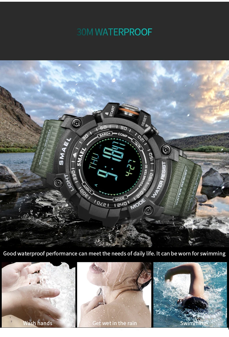 SMAEL мужские умные часы с измерением высоты давления, компас часы для мужчин