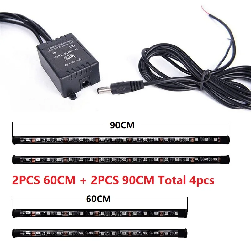 Напряжение: 12 В постоянного тока Гибкий и водонепроницаемый: Да Размер оптинал: 90*120 см 2 светодиодных ленты (90 см/35 дюймов) 2 светодиодных ленты (120 см/47 дюймов) 60*90 см 2 светодиодных ленты (90 см/35 дюймов) 2 светодиодных ленты (60 см/24 дюйма) Контроль оптинала 1. Голосовое дистанционное управление Силиконовое уплотнение водонепроницаемое Фонари шасси оснащены водонепроницаемым клеем На обоих концах для обеспечения водонепроницаемости