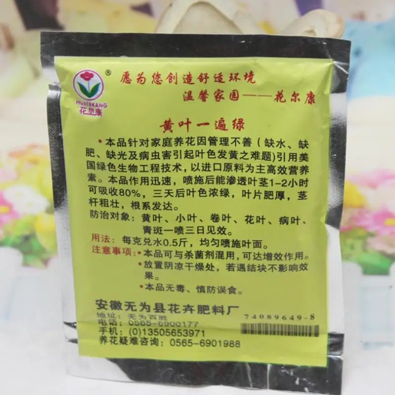Этот продукт относится к зеленой биоинженерной технологии для плохого управления цветами в семье из-за плохого управления (недостаток воды, отсутствие удобрений, светильник, болезни и насекомых-вредителей), В основном импортируется сырье как высокоэффективные питательные вещества. Этот продукт имеет быстрое действие, может проникать в ствол листа после распыления и может поглощать 80% в течение 1-2 часов. Через три дня цвет листьев толстый зеленый, лист толстый, стебель толстый, и разработана корневая система.