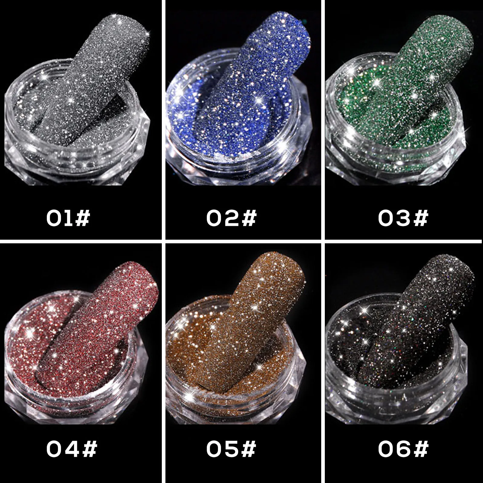 100% новая розничная продажа Вес: 1 г/кор. Материал: порошок Цвет: золотой, серебряный, красный, синий, зеленый, черный Посылка: 1 коробка алмазный порошок для ногтей Как использовать: 1. Очистите поверхность ваших ногтей 2. Нанесите базовое пальто 3. Используйте тени для век, чтобы выбрать порошок и нанести его на ногти 4. Повторите шаг, пока вы не будете удовлетворены эффектом. 5. Запечатать его с УФ верхним покрытием.