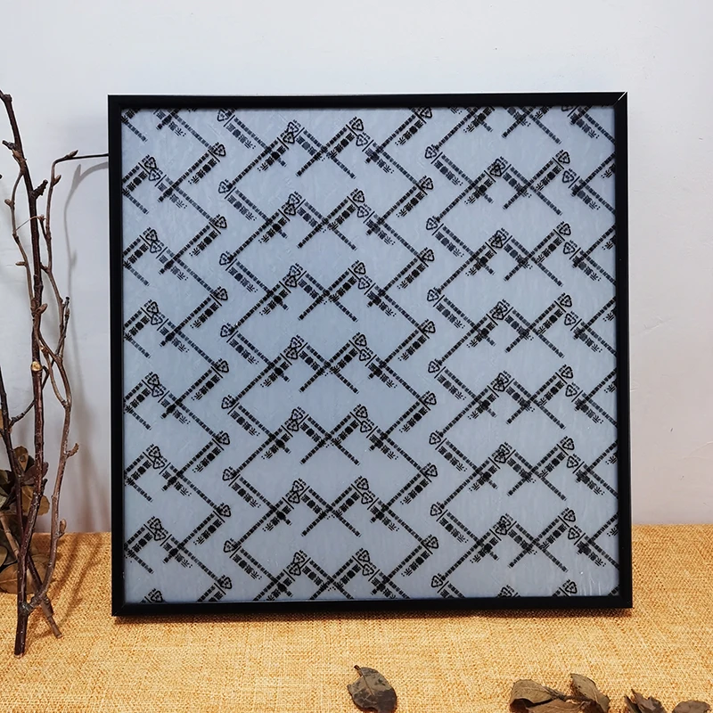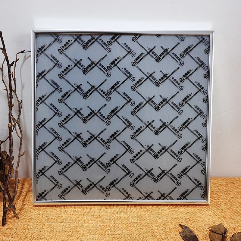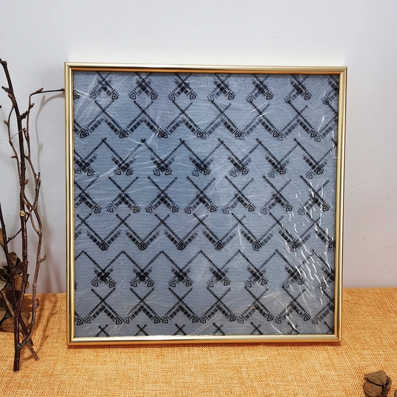 Положите картину между пластиковой пластиной и оргстеклом, и положите их в рамку.