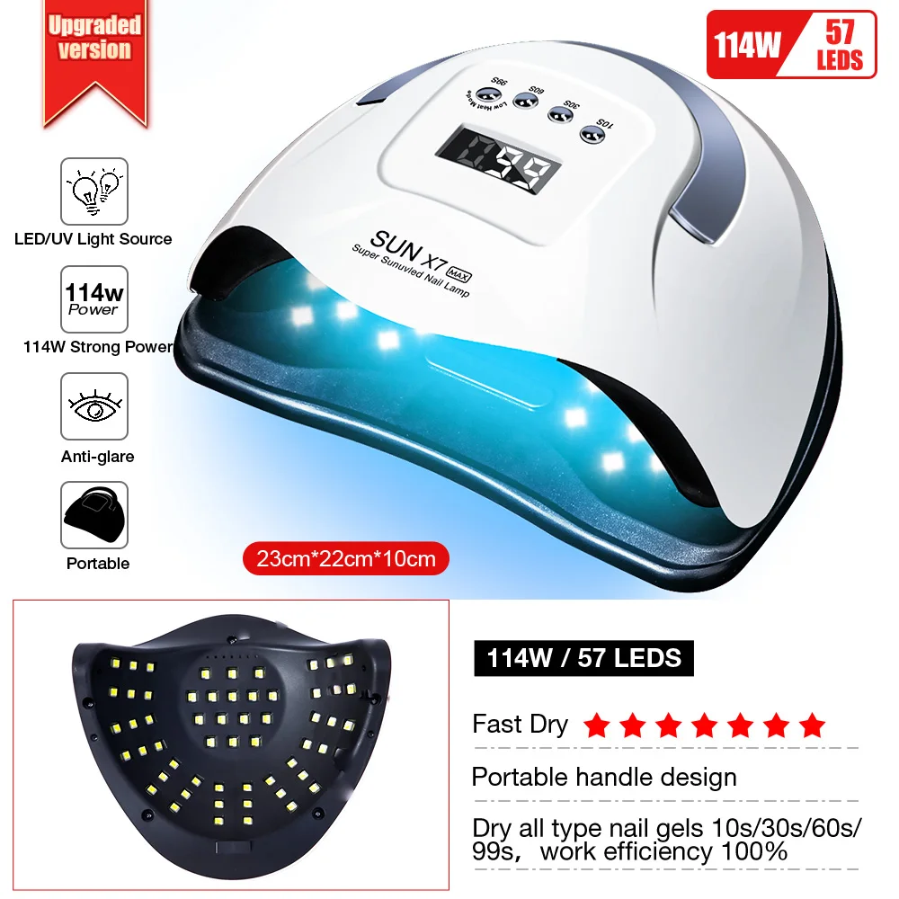 Ladymisty 114 Вт 57 шт. Светодиодная лампа Сушилка для ногтей с двумя ручками УФ-лампа для маникюра с автоматическим распознаванием инструмент для маникюра
