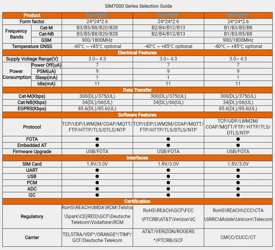 Рабочее напряжение: 5 В (Примечание: модуль сразу же потребляет большое количество тока при подключении к сети. Поэтому внешний источник питания необходим на работе.) Входное напряжение: 7 ~ 12 В постоянного тока (диапазон VIN: 6 ~ 20 в) Коммуникационный модуль: SIM7000 Однополосный TDD-LTE B39 Четырехдиапазонный FDD-LTE B1/B3/B5/B8 (SIM7000A) Четырехдиапазонный FDD-LTE B3/B8/B20/B28 (SIM7000E) GPRS/EDGE 900/1800 МГц Выходная мощность-GSM900: 2 Вт-DCS1800: 1 Вт УПРАВЛЕНИЕ ЧЕРЕЗ AT-команды Рабочая температура: от-40 ℃ до + 85 ℃ GNSS (GPS, ГЛОНАСС, BeiDou, компас, Galileo, QZSS) Обновление прошивки через USB 2,0 Поддержка SIM-карт и NB-IoT карт (Примечание: Убедитесь, что диапазон частот SIM включен в диапазон частот, который он поддерживает). Датчик окружающей среды BME280 Диапазон измерения температуры: -40 ℃ ~ + 85 ℃, Разрешение 0,1 ℃, отклонение ± 0,5 ℃ Диапазон измерения влажности: 0 ~ 100% относительной влажности, разрешение 0.1% относительной влажности, отклонение ± 2% относительной влажности Диапазон измерения давления: 300 ~ 1100 гПа Время выборки влажности: 1 с Рабочая температура:-30 ℃ ~ + 85 ℃ Размеры: 2,1x2,7 дюйма/53,4x68,6 мм