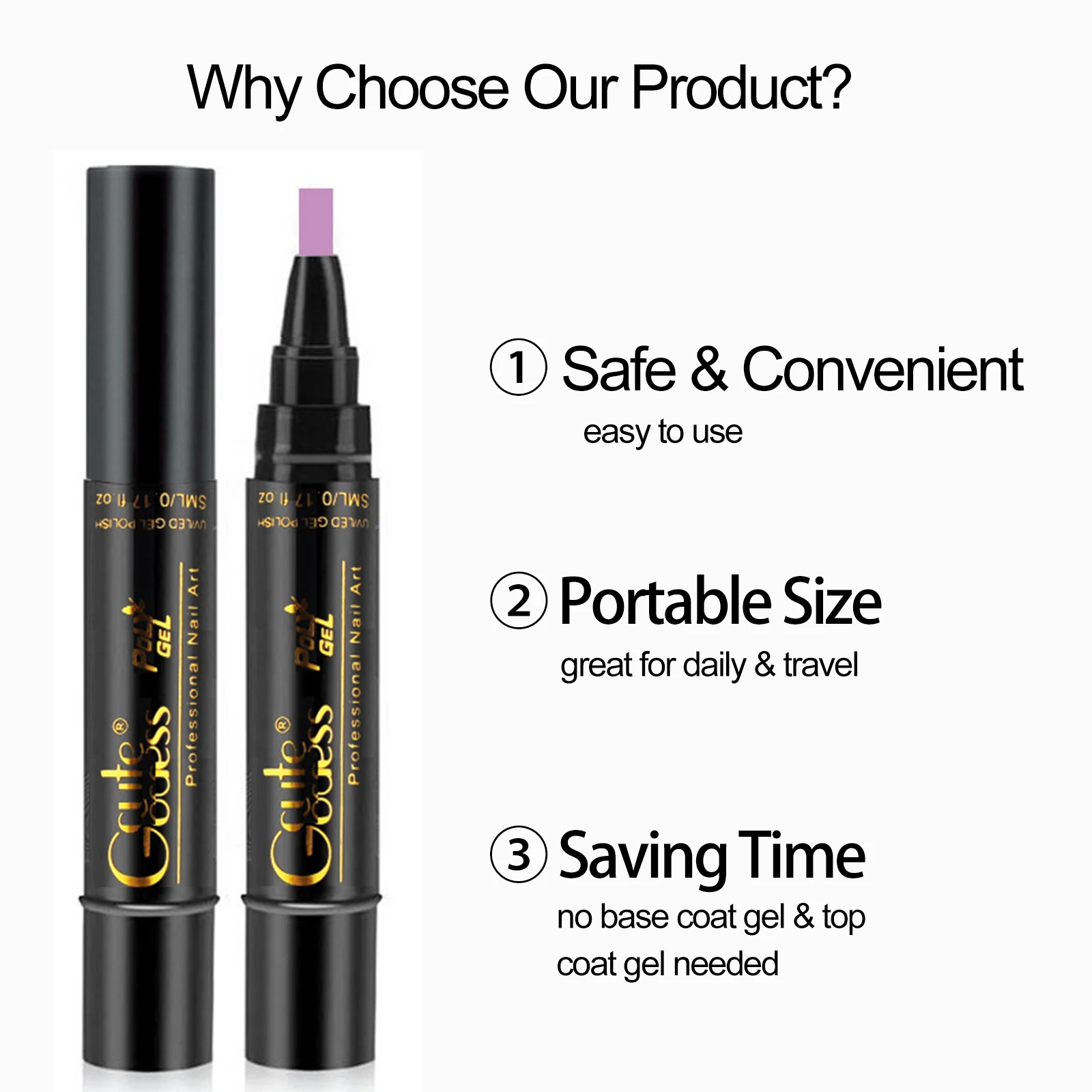 3 в одном дизайне, наша ручка для лака для ногтей универсальна. С этими ручками вам не нужно использовать клей или уплотнение.