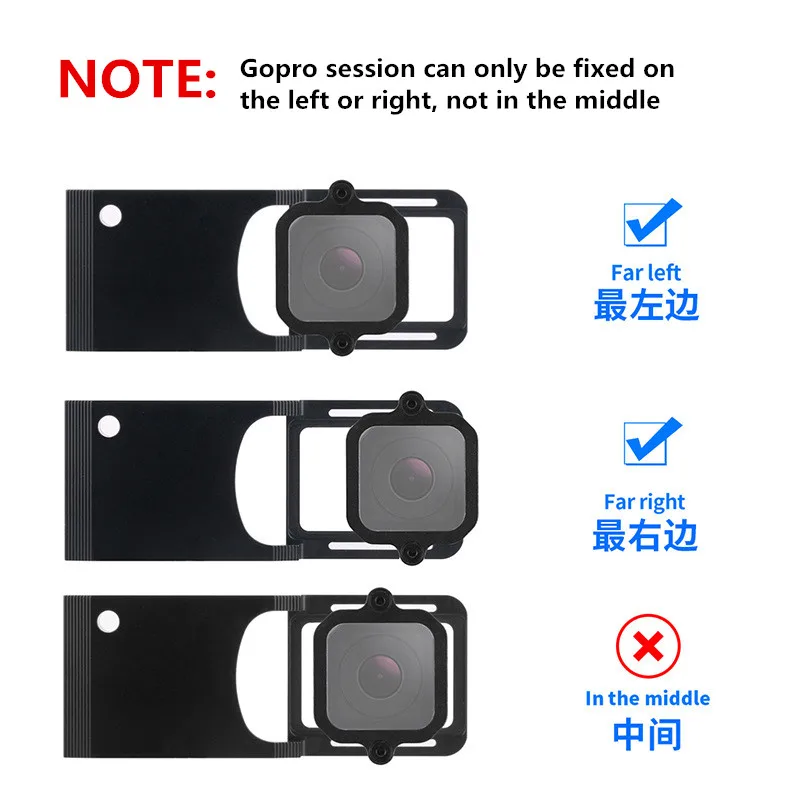 (Square clip) only applicable to session, the mounting screw hole distance is 50mm, the inner size of the buckle is 35*35mm, this is the size to avoid the camera, when the product size is less than 35*35mm or the camera size is greater than 35*35mm None of them can be used, please carefully look at the product size selection (this accessory needs to be used with the motherboard to hold the session);