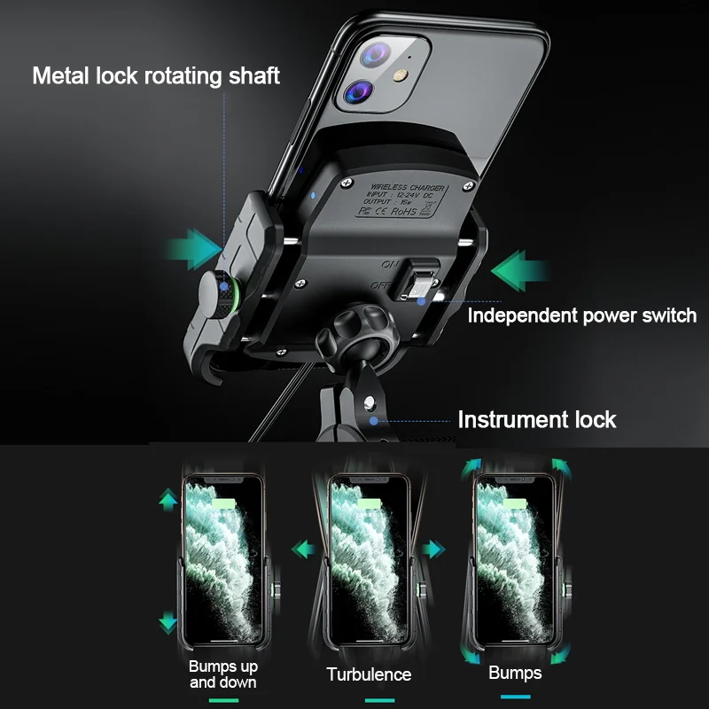Держатель для телефона мотоцикла, 15 Вт, беспроводное зарядное устройство, кронштейн с вращением на 360 градусов, водонепроницаемая подставка для телефона на руль мотоцикла