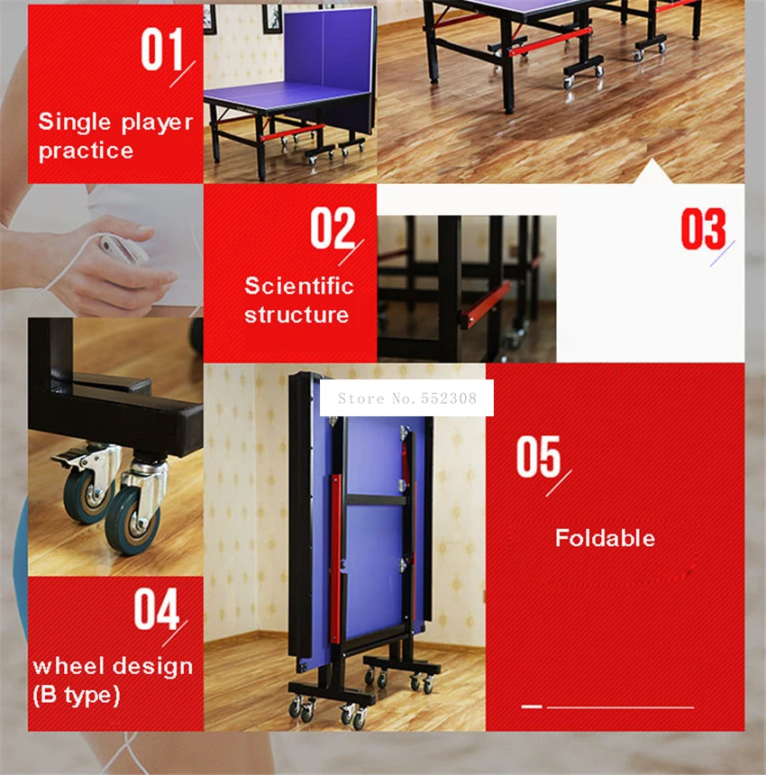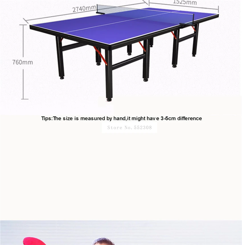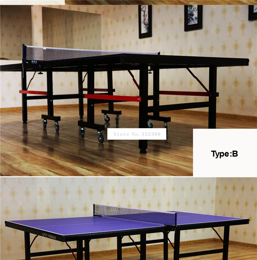 Название: стол для настольного тенниса Тип: A/B (необязательно) Однородность эластичности: <10 мм Коэффициент трения: ≤ 0,4 Вес нагрузки: 300 кг Материал панели: ДВП высокой плотности Размер расширения: 2740*1525*750 мм Цвет: синий Посылка 1 стол для настольного тенниса 1 сетчатая рама 1 сетка Демонстрация товара: