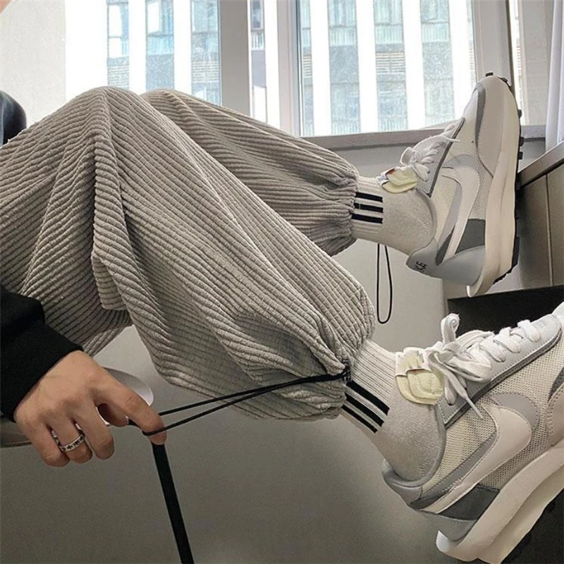 Мужские штаны для бега, новый стиль, Осень-зима, повседневные свободные прямые вельветовые брюки с широкими штанинами, мужские удобные брюки, уличная одежда