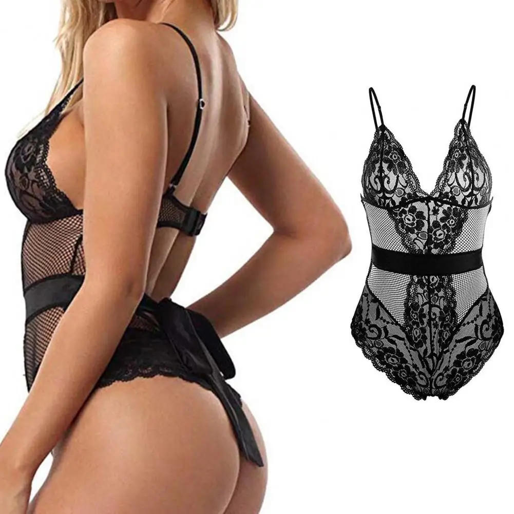Эротическое женское прозрачное кружевное платье с глубоким v-образным вырезом и открытой спиной, сексуальное ночное белье