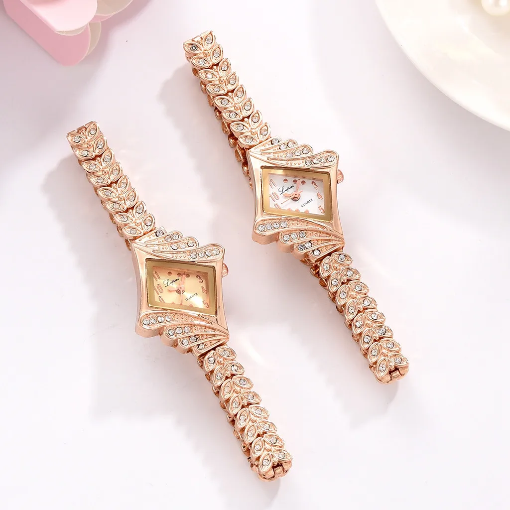 Квадратный циферблат, инкрустированный бриллиантами, с браслетом, наполненным листьями, не только выделится, но и станет теплым и темпераментным Стильные часы с браслетами, которые дополняют друг друга, чтобы показать ваш характер Простой циферблат, практичный и красивый Легкая Сочетается с различной одеждой Подходит для широкого круга людей, лучший подарок для мамы, девушки, Хороший другОсобенность: