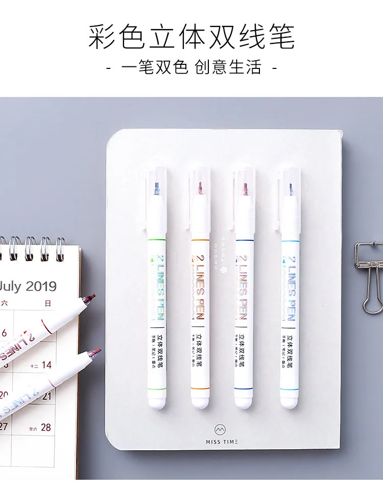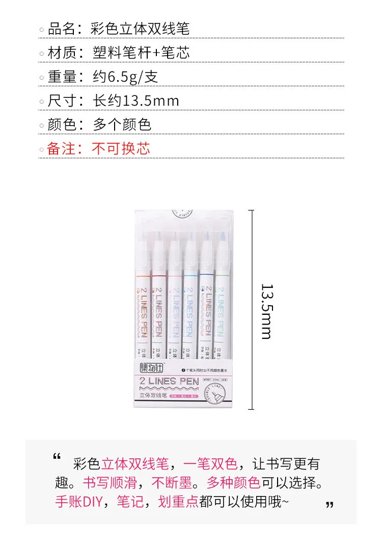 1 шт. креативная двухцветная линейная маркерная ручка для журнала DIY, канцелярские принадлежности для школы, кавайная 3D цветная художественная ручка ed, скрапбук