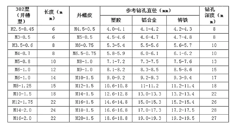 Винт: Резьбовая вставка Размер: внутренний диаметр --- внешний диаметр --- длина