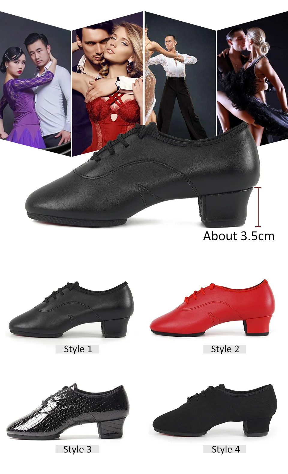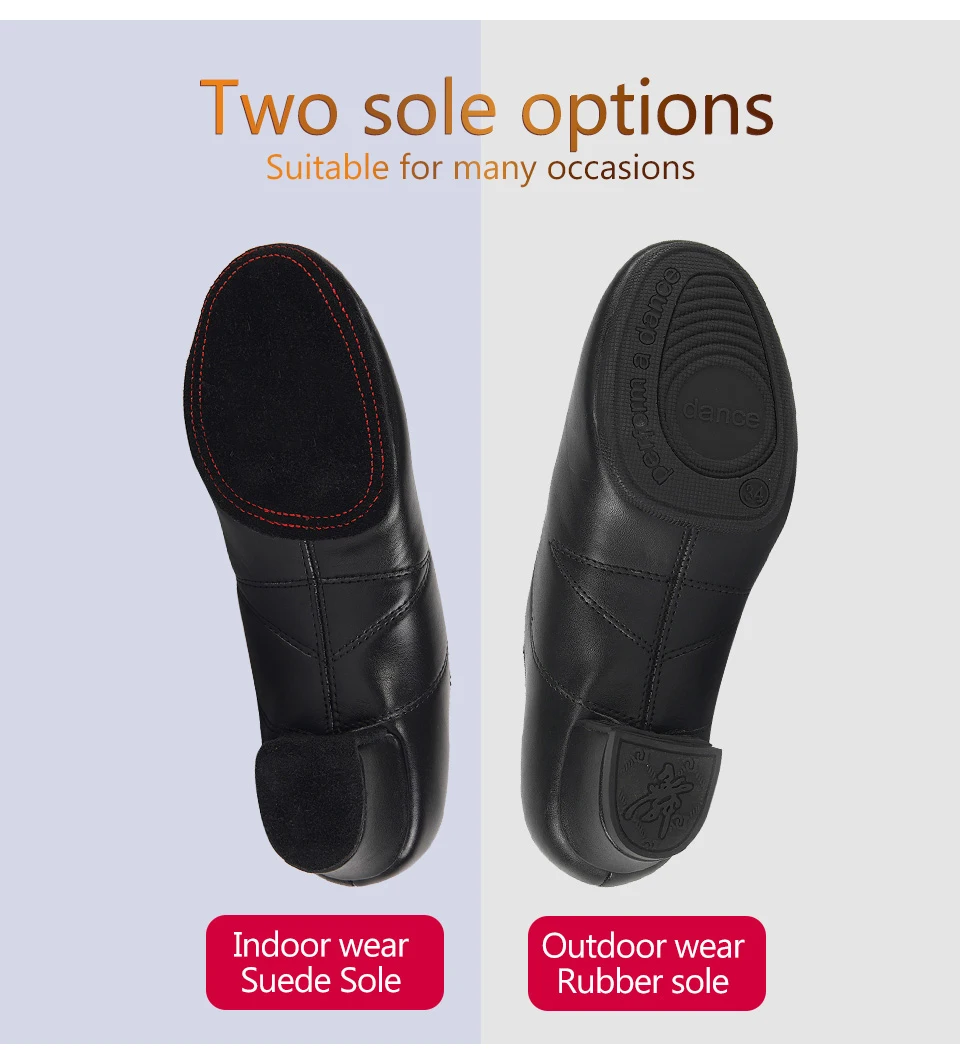 4 разных стиля, 2 разных подошвы: резиновая/Кожаная подошва для улицы и замшевая подошва для танцев в помещении.