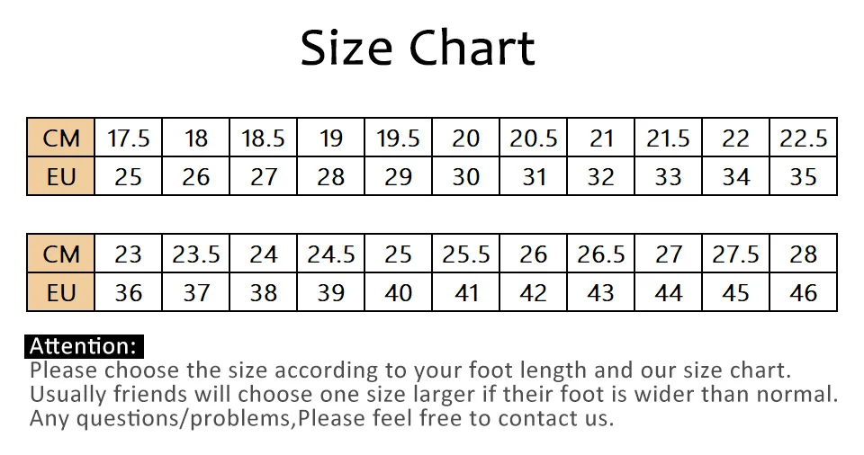 Дорогие друзья: Таблица размеров не соответствует стандартным Европейским размерам. Пожалуйста, выбирайте размер в соответствии с длиной стопы и таблицей размеров. Обычно друзья выбирают обувь на один размер больше, если у них широкая стопа. По любым вопросам, пожалуйста, не стесняйтесь обращаться к нам. Мы постараемся сделать все возможное, чтобы помочь. Спасибо от сердца!