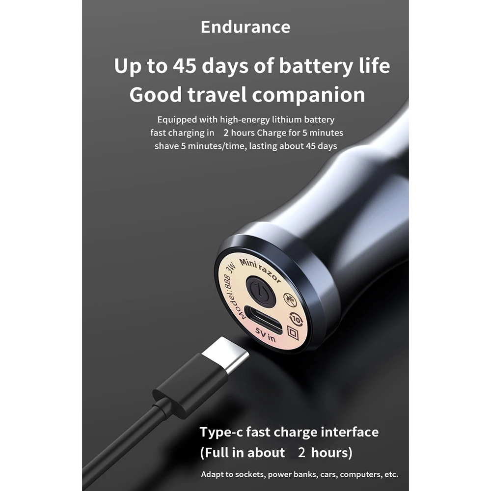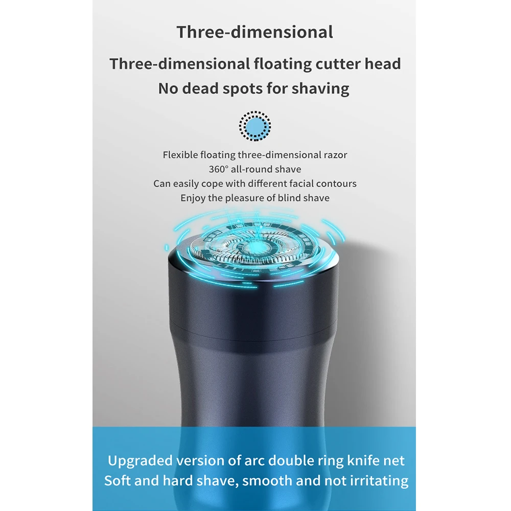 Трехмерная плавающая режущая головка, бритье бороды на 360 °. Безопасен для всех типов и тонов кожи.