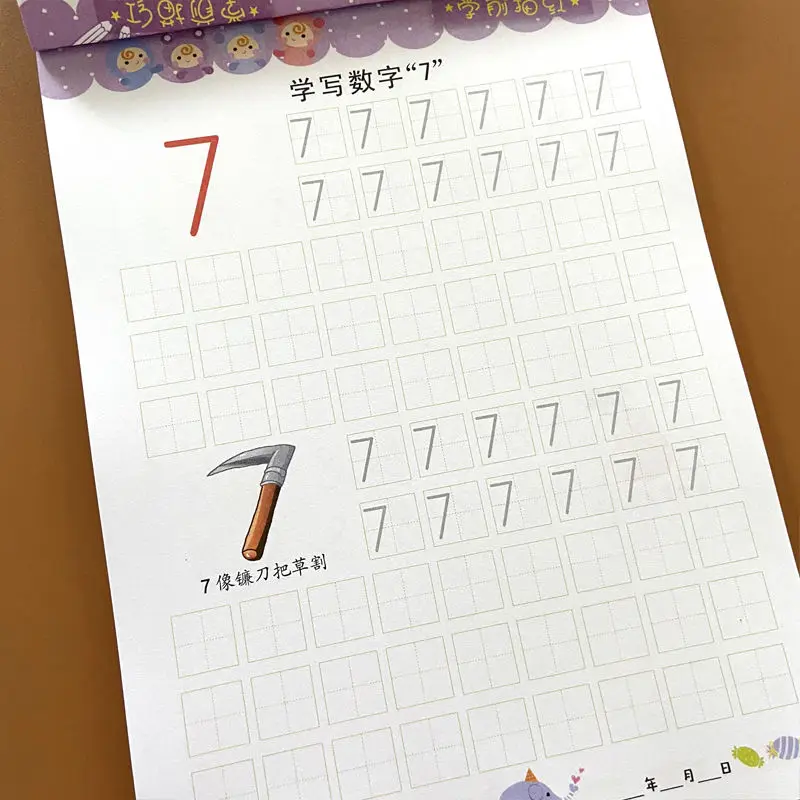 Копировальная книга цвет версия Трассировка красные цифровые китайские иероглифы пиньинь практика письма детей практика Livros Livres